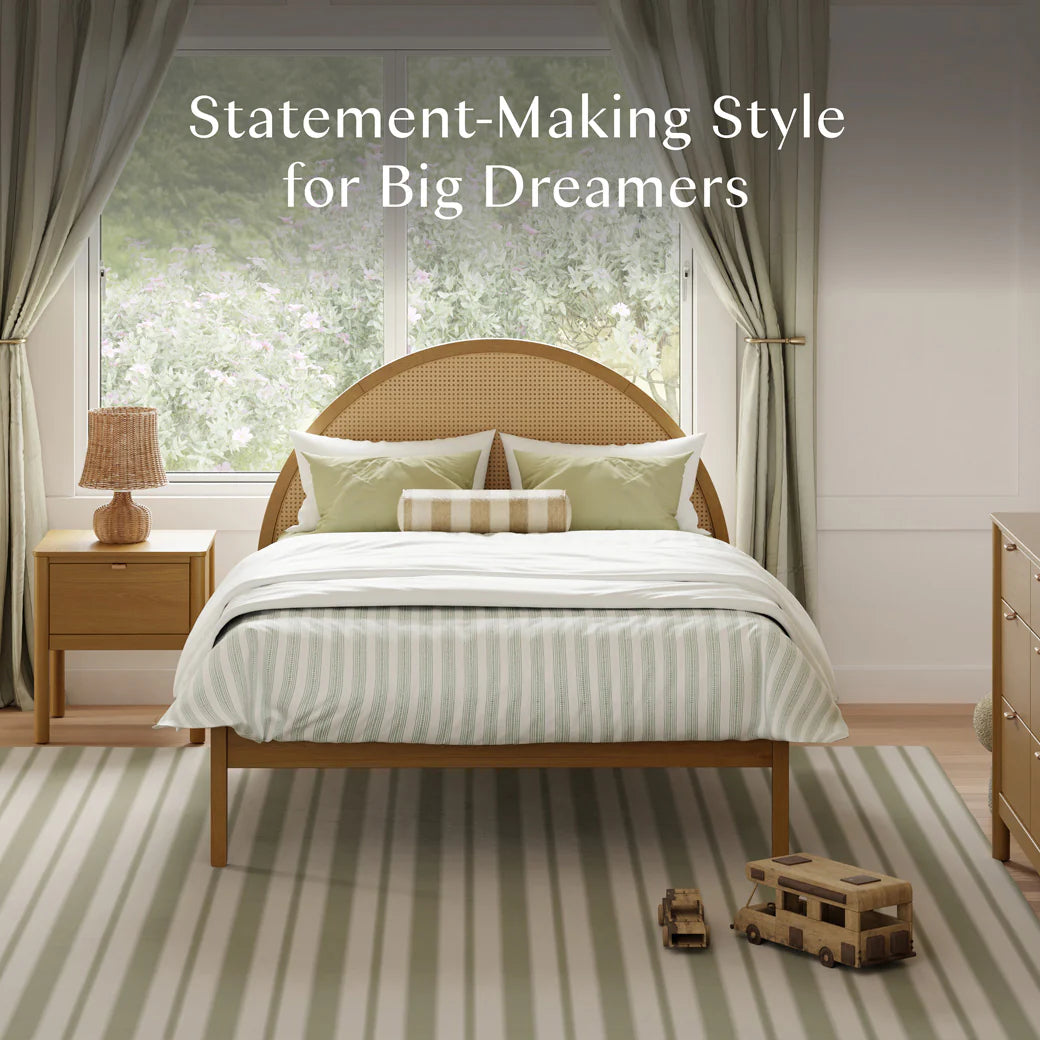 The Bondi Cane Full Bed by Babyletto combines a gently arched headboard and breezy woven cane paneling to bring natural texture and relaxed charm to your child’s room. Designed with extra room to grow, this kids’ full bed transitions beautifully from early childhood to tween years. Add the optional Full Storage Trundle Bed for extra sleeping space or everyday storage, perfect for sleepovers, books, and everything in between. The Bondi Cane Full Bed by Babyletto makes it easy to create a space that feels stylish, functional, and all their own.