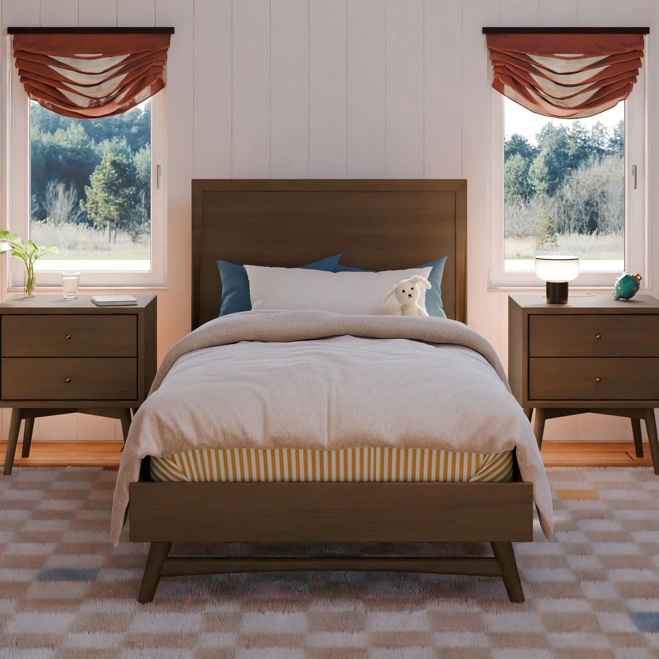 REFINED MID-CENTURY MODERN STYLE: Featuring a modern, clean silhouette in warm wood tones. Flared tapered legs add a playful touch to this sophisticated twin bed.