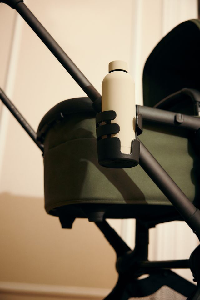 The attachable Bugaboo Cup Holder in black is suitable for a wide range of drink containers up to a volume of approximately 700 ml. You can still reverse the handlebar position on your Bugaboo stroller with the cup holder attached. Please note that the cup holder is not suitable for hot drinks.