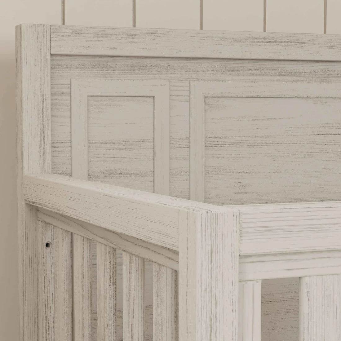 Lean into the modern farmhouse aesthetic with the Newbern 4-in-1 Convertible Crib. Featuring beautifully textured finish, streamlined metal base and contemporary trim details, this crib will perfectly complement your home. Built to seamlessly transition from newborn to toddler, the crib has four different mattress heights and easily converts to a toddler bed, daybed and full-size bed. Complete your nursery with the Newbern 6-Drawer Dresser.