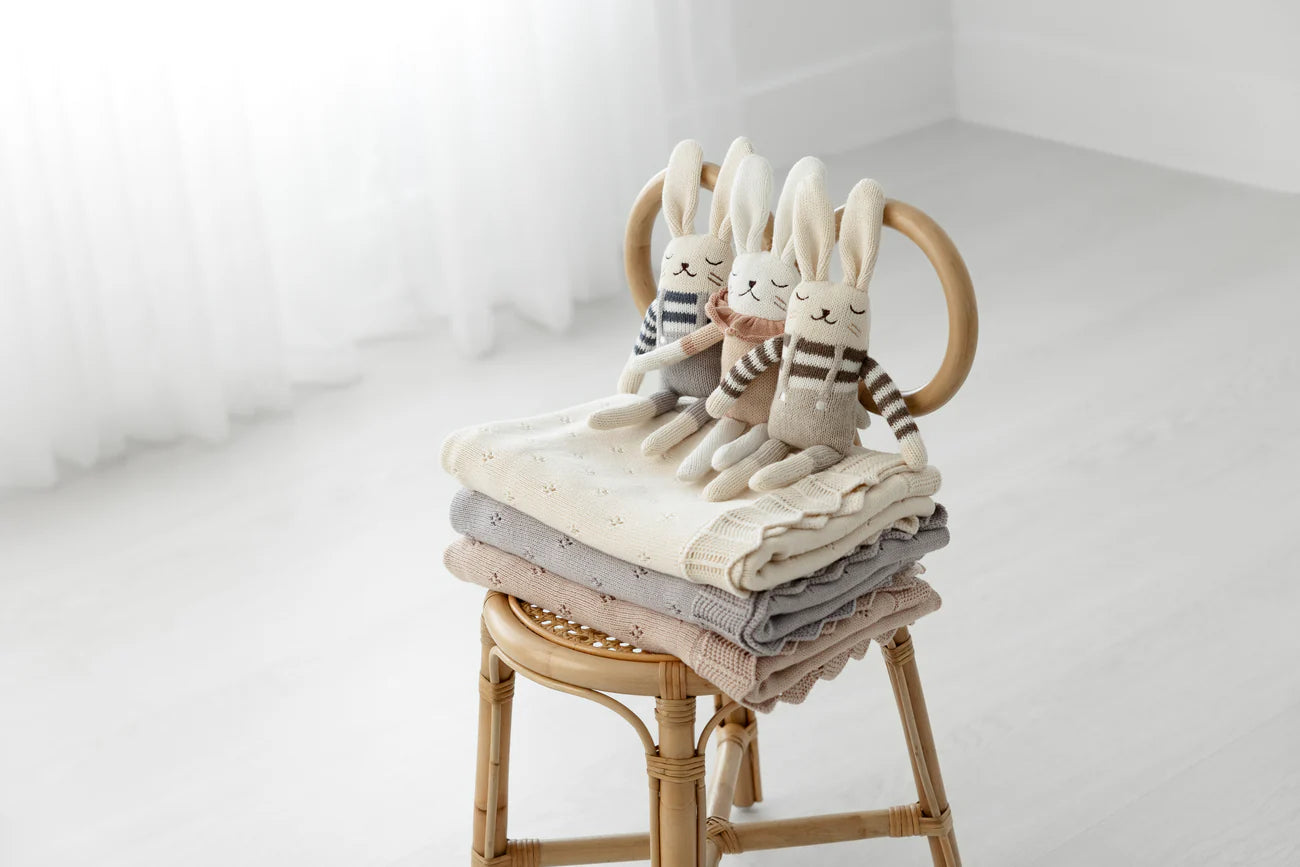 The Brunello baby blanket is designed with a linear dotted design, finished with a natural border. Soft to the touch this mid - weight blanket is an everyday staple perfect all year round.
