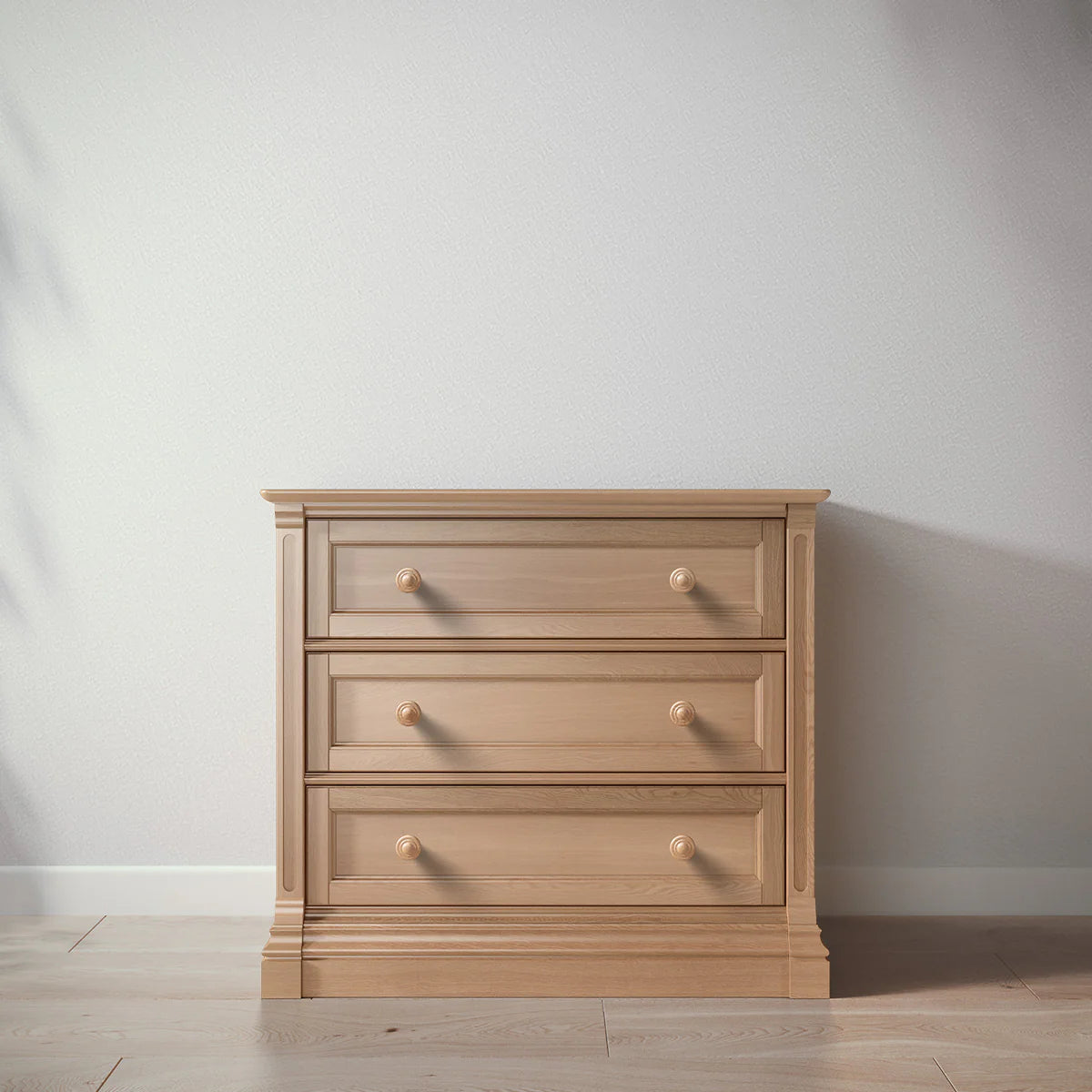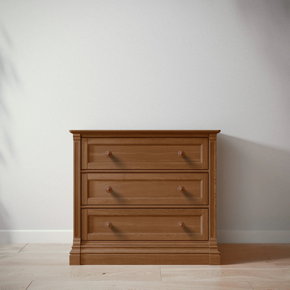 Imperio Single dresser is the ideal storage solution for small nurseries. Three large drawers offer generous space for clothing while the top can be used as a changing station. Functionality and style are standard features as well as the hydraulic drawer slides and safety features.