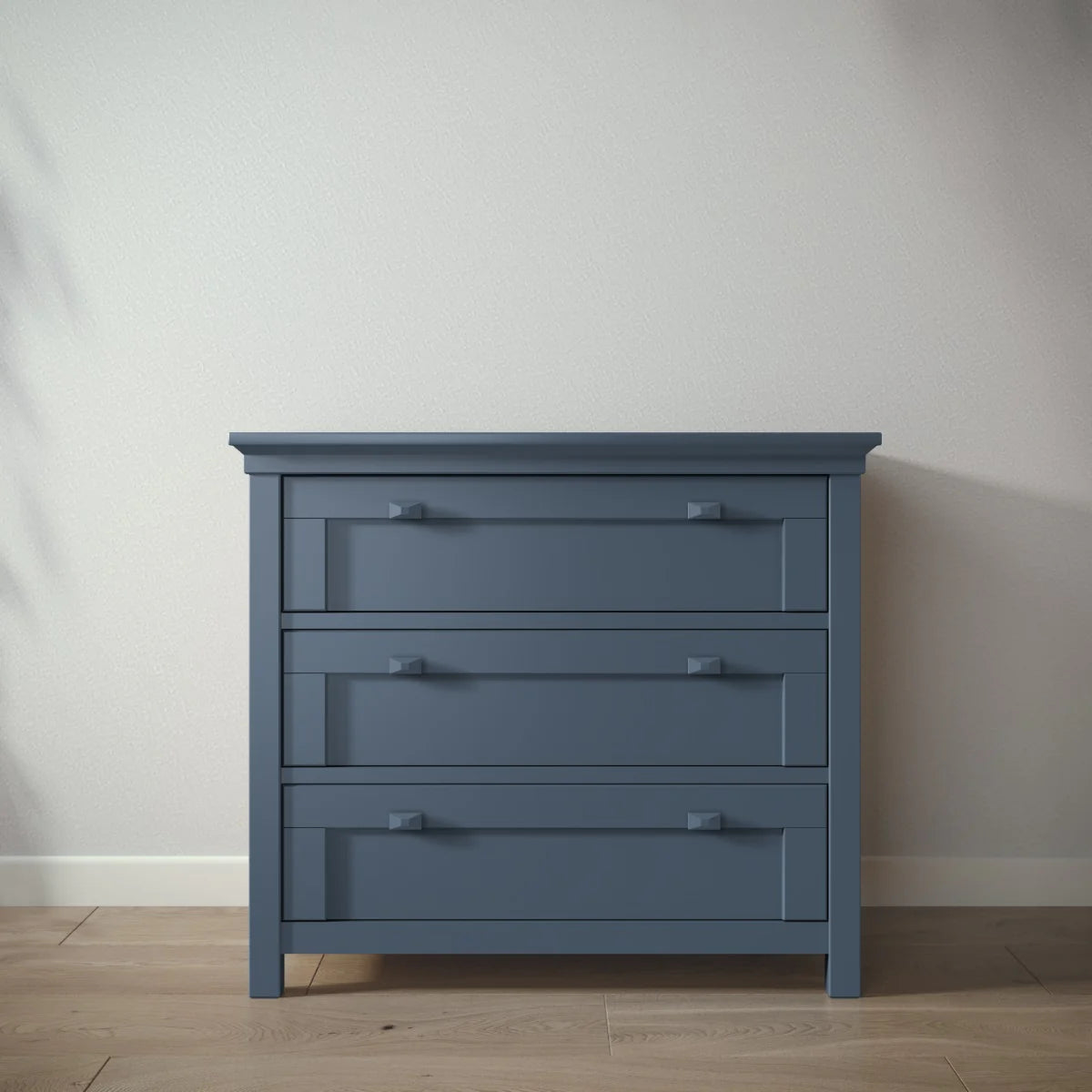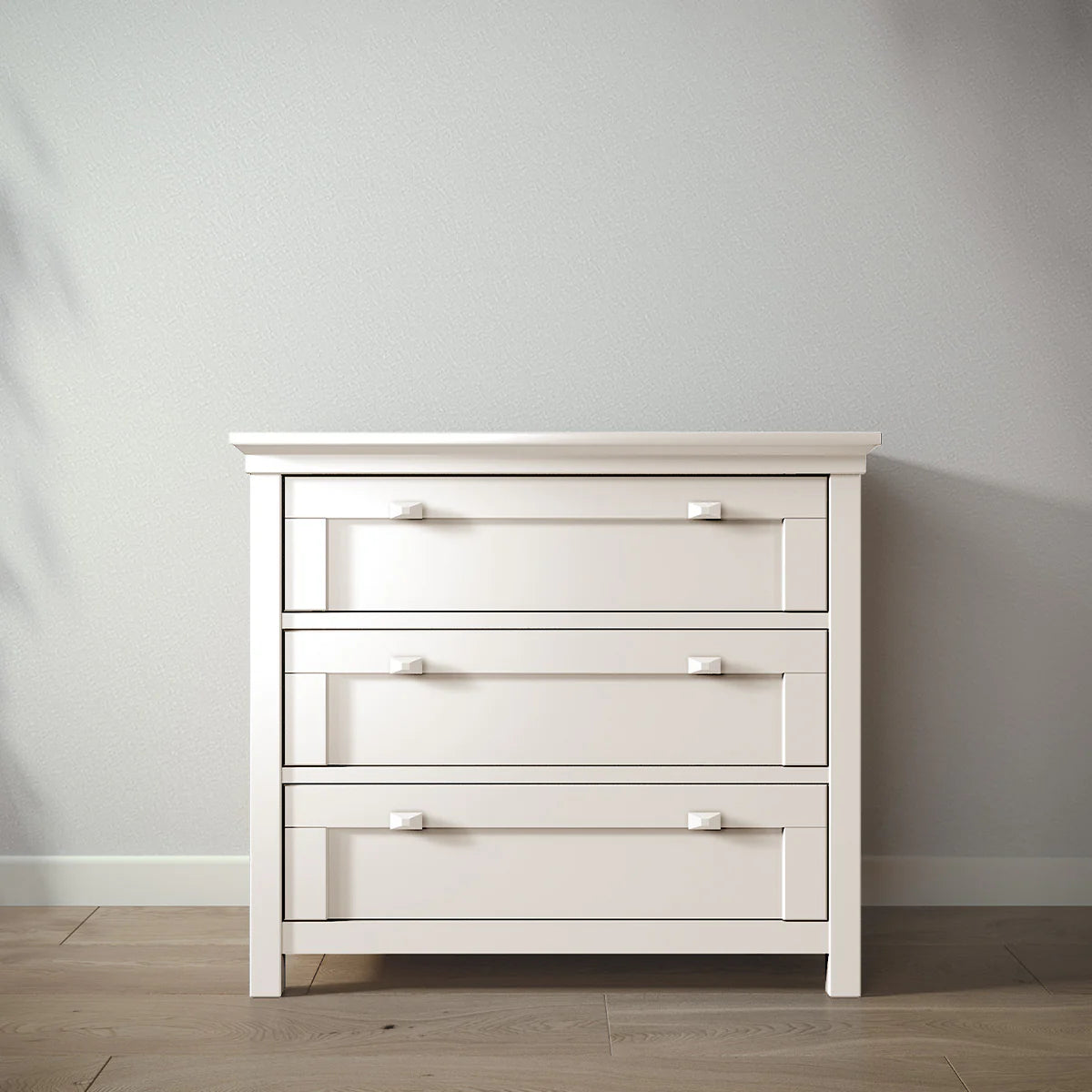 Karisma Single dresser is ideal for small nurseries and offers generous storage. There are 3 large drawers and it accommodates a changing tray making it a versatile baby changing and storage station. Karisma case items are standardly equipped with wooden diamond shaped handles.