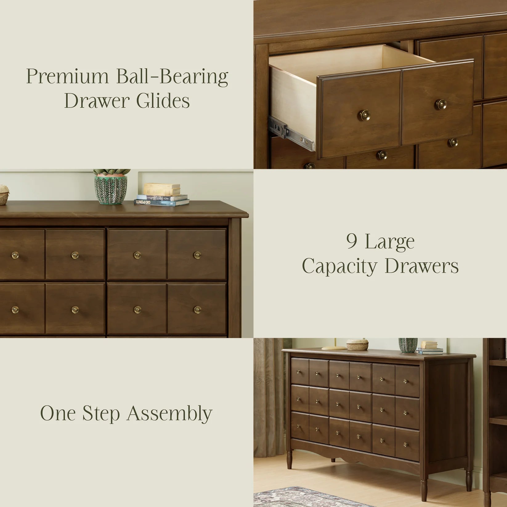 The vintage-inspired Liberty 9-Drawer Dresser brings timeless charm and generous storage to your nursery or any room in the home. Featuring apothecary-style drawer fronts, classic tapered feet, and a gracefully scalloped apron, every detail is crafted with care. Designed to complement our best-selling Liberty, Abigail, and Winston cribs, it’s the perfect blend of function and style.