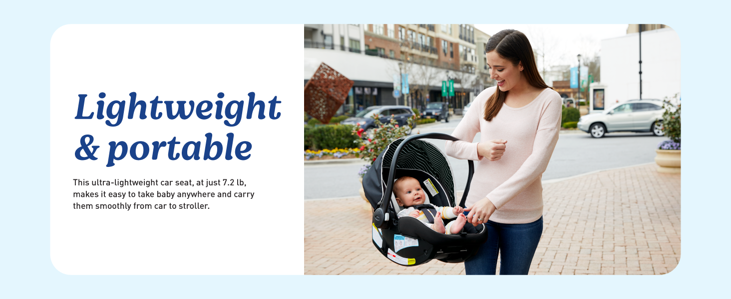 - Lightweight infant car seat weighs only 7.2 lb, making it easy to carry baby from car to stroller