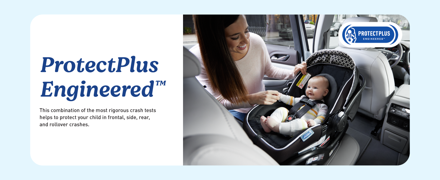 - Graco ProtectPlus Engineered: a combination of the most rigorous crash tests that helps protect your child in frontal, side, rear & rollover crashes; additional testing based on the New Car Assessment Program and for extreme car interior temperatures