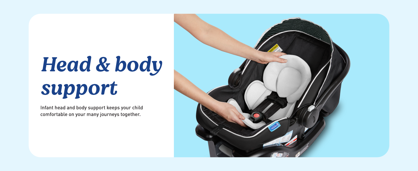 - Soft knit infant head and body supports provide a snug and cozy fit for infants as little as 4 lb and can be easily removed as baby grows