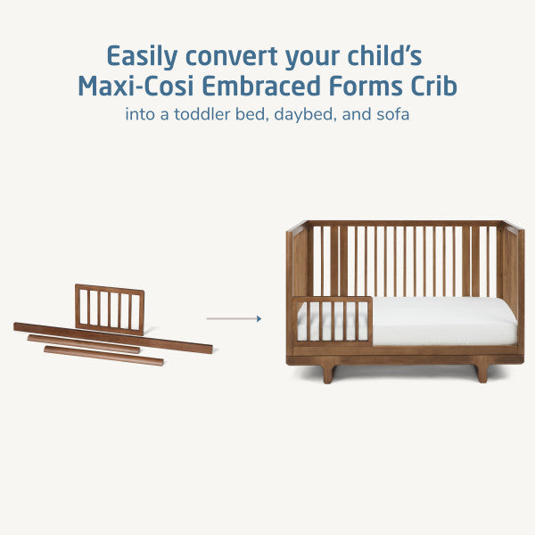 The Embraced Forms Toddler Guardrail conversion kit lets you easily convert your child’s Embraced Forms 4-in-1 Convertible Crib into a toddler bed, daybed, and sofa.