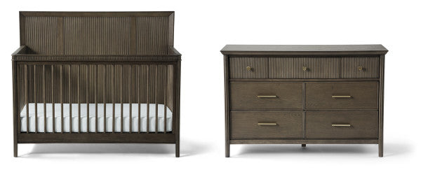 Our Maxi-Cosi Reid 7-Drawer Dresser embraces style with distinctive reeded detailing on the top three drawers and brushed brass knobs and pulls. Each dovetail drawer features soft-close undermount glides. The reeded design is repeated along the rounded front posts to match our Reid 6-in-1 Convertible Crib.