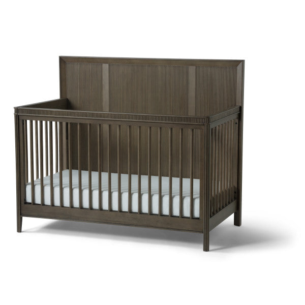 Our Maxi-Cosi Reid 5-in-1 Convertible Crib features a deeply dimensional mitered frame headboard with distinctive reeded paneling. The reed detailing is also featured on the rounded top caps and elegant posts. Soft, curved corners combine with smooth, round spindles to provide an open, inviting space for your little one.