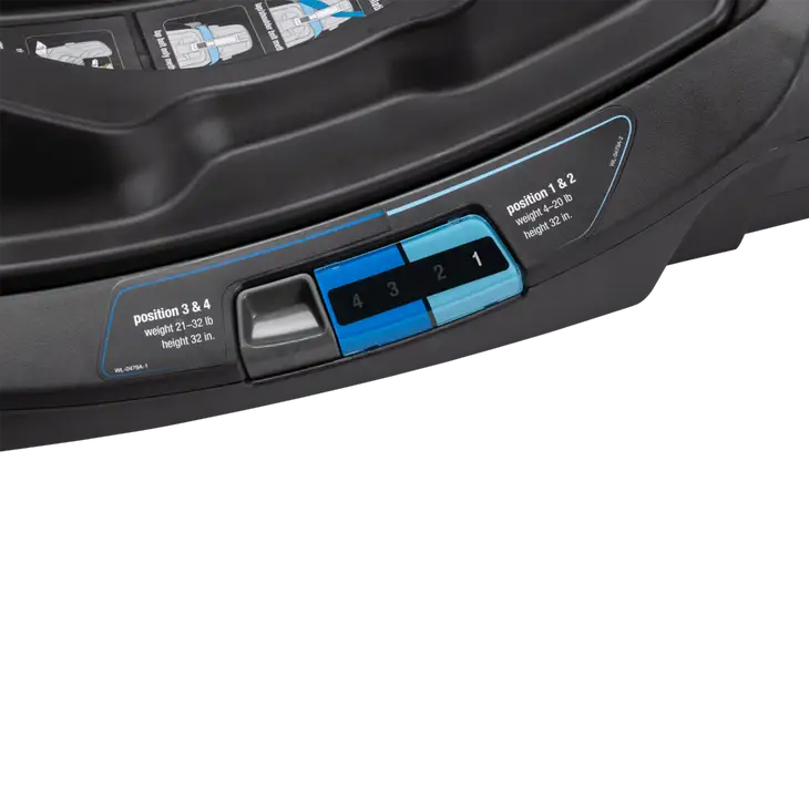 • 4 position adjustable rigid latch to remove or reduce the gap between vehicle seat and base