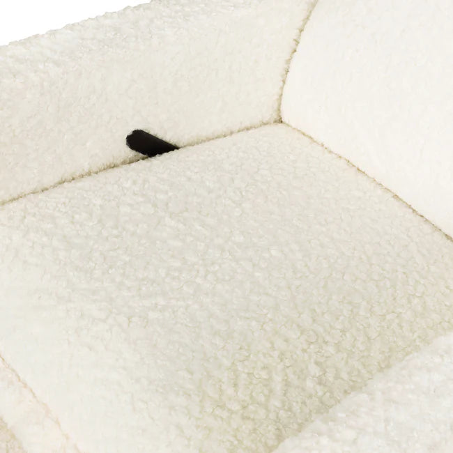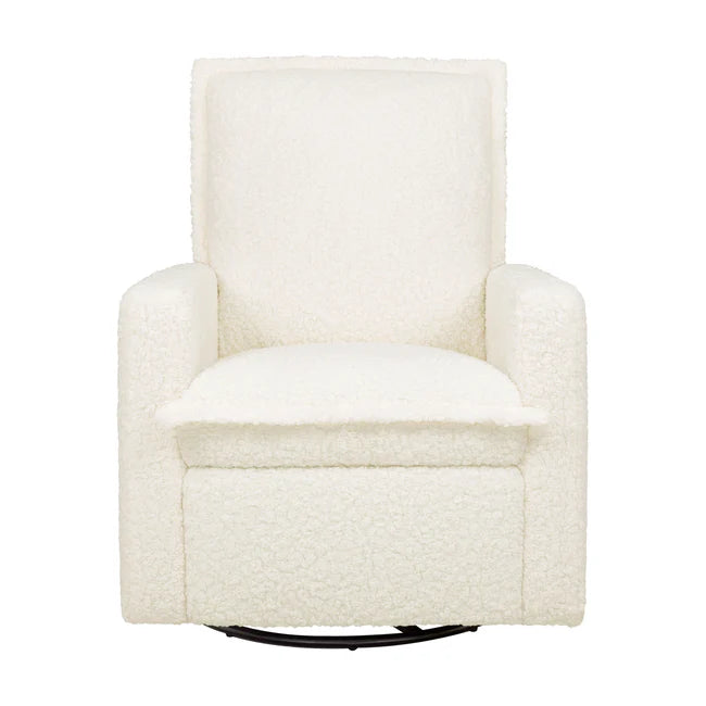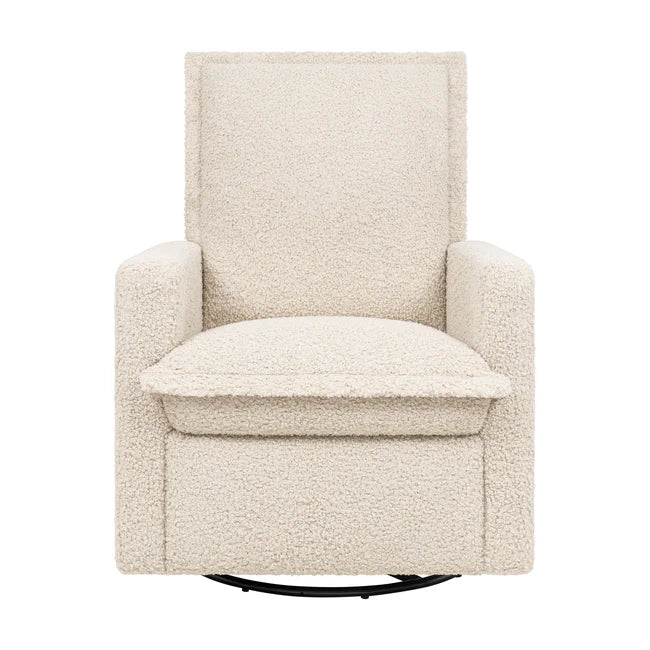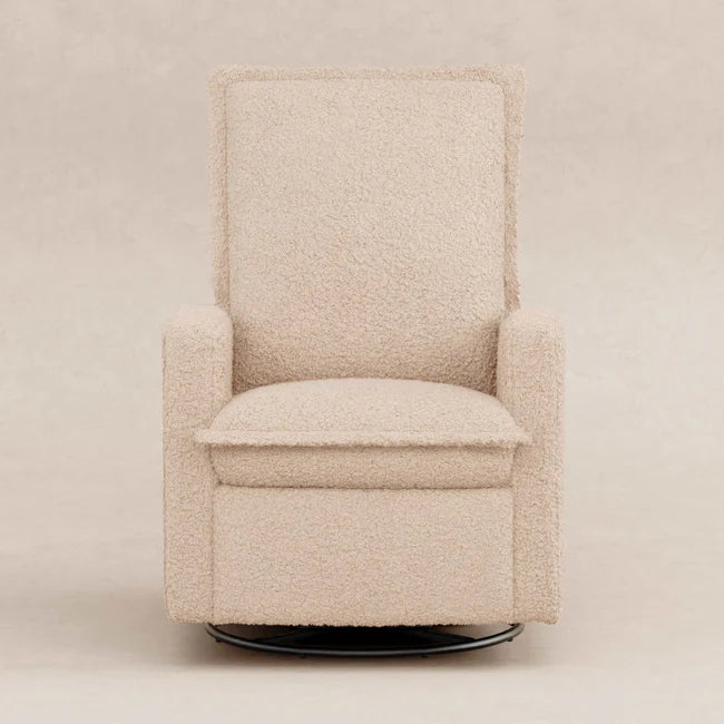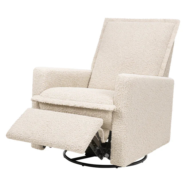 Our popular Cali Glider, now with even more function. Thoughtfully designed with a plush pillowback for head and neck support, this cozy nursery chair gently glides, swivels, and reclines to keep you and your little one comfortable through every feed, snuggle, and storytime. Upholstered by hand in our high pile fabrics, the Cali Flange Recliner and Swivel Glider blends comfort and style that lasts well beyond the baby years.