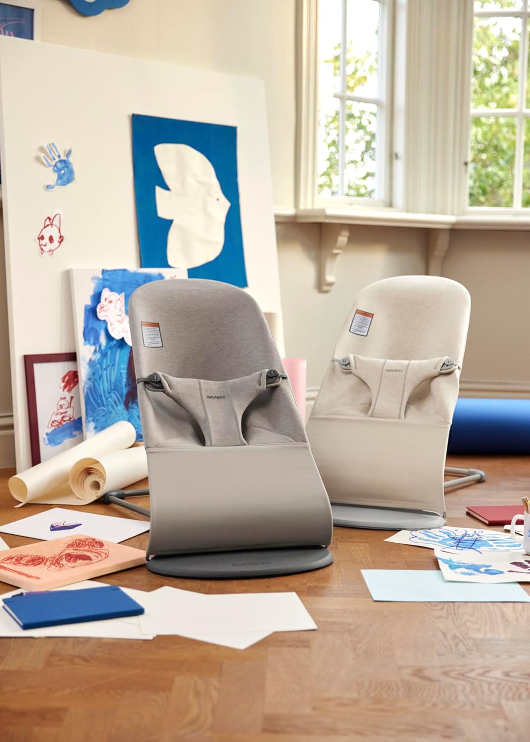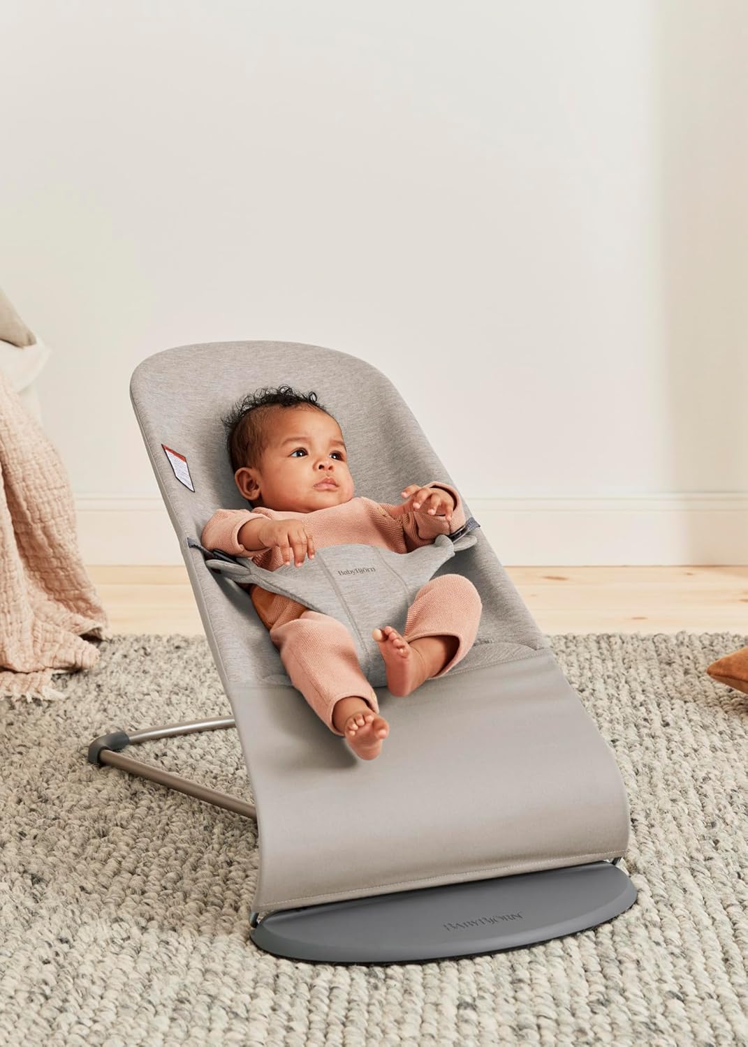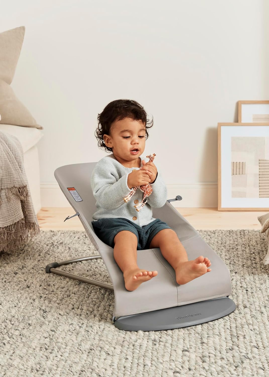 Our lightweight bouncers are easy to move around and take with you—they're a cozy place for your baby to play close by you while you have your hands free for a while. The natural rocking of a bouncer usually has a comforting effect on a very young baby. As your baby grows and learns how to control the rocking, the bouncer becomes even more fun and also stimulates your baby's balance and motor skills.