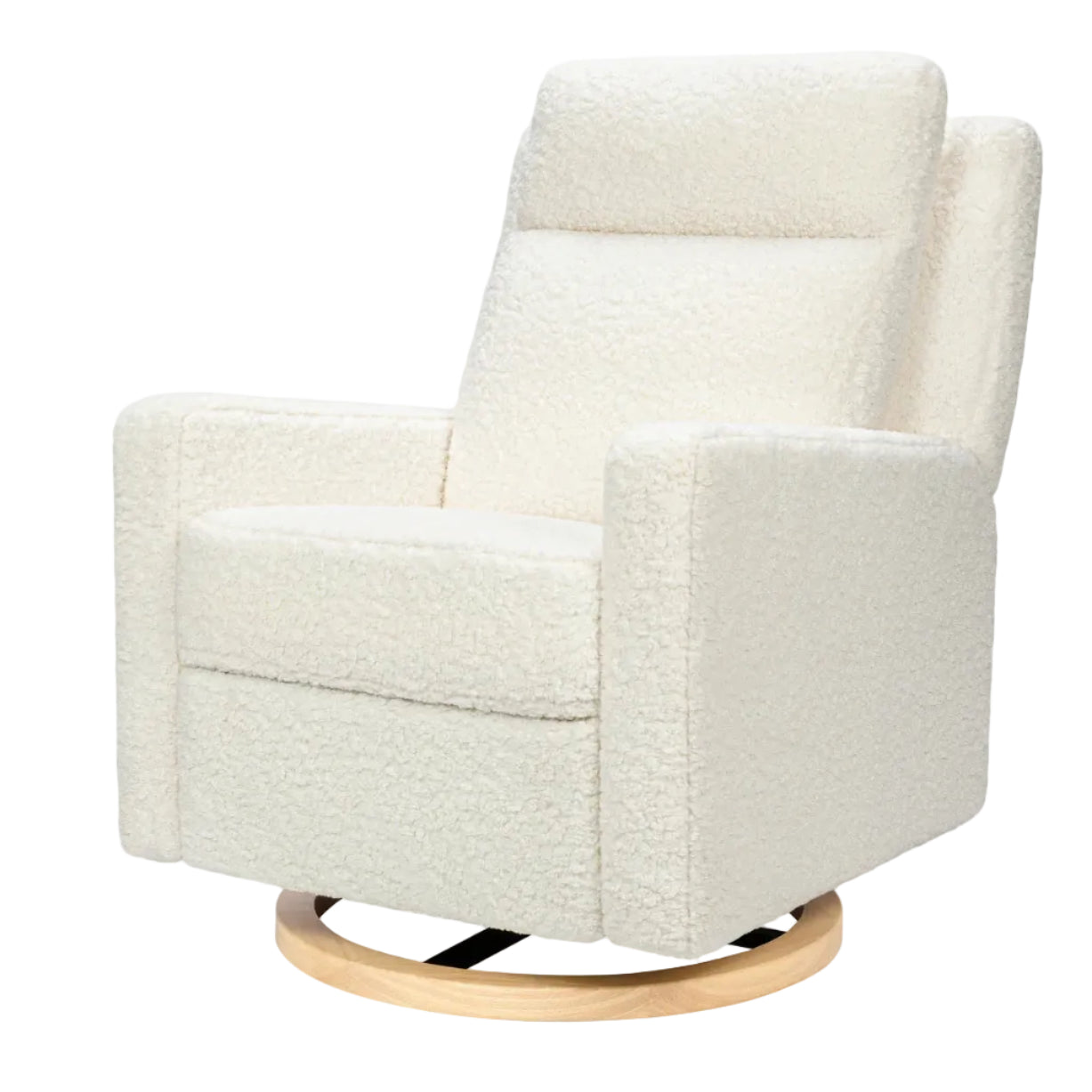 The Sigi Pro Power Recliner takes nursery comfort to the next level with its sleek, modern design and advanced power features. Effortlessly customize your comfort at the touch of a button with power recline, an adjustable power headrest, and tailored power lumbar support. The 270-degree swivel allows for easy movement, while the built-in underlight with adjustable brightness provides a gentle glow for nighttime feeds. Upholstered by hand in durable, high pile fabrics and featuring a sophisticated wood base, it's a premium, GREENGUARD Gold certified choice for a healthy and stylish home.