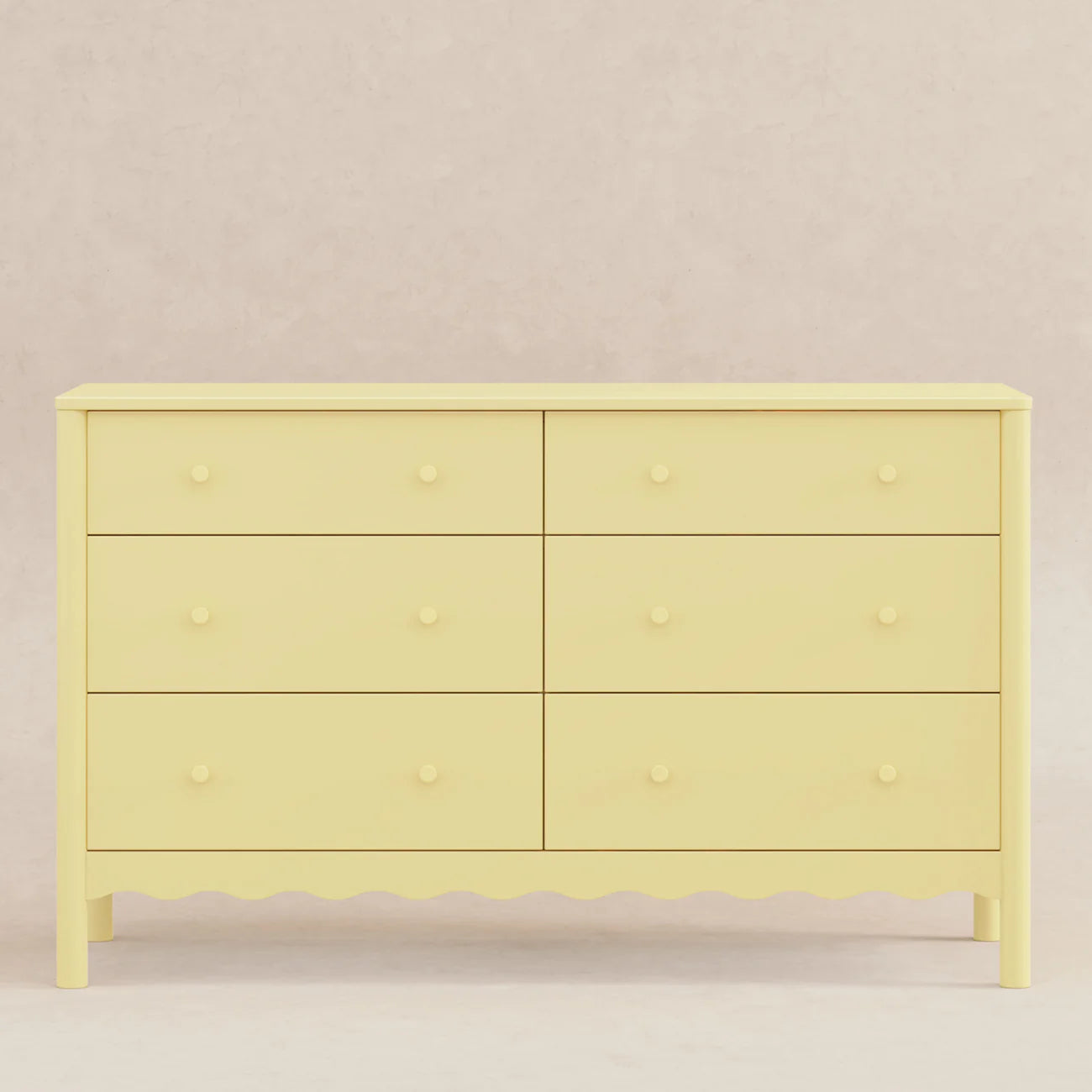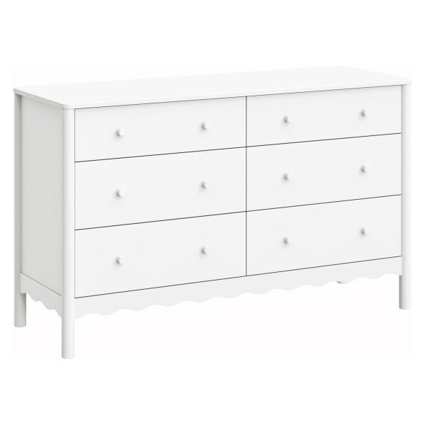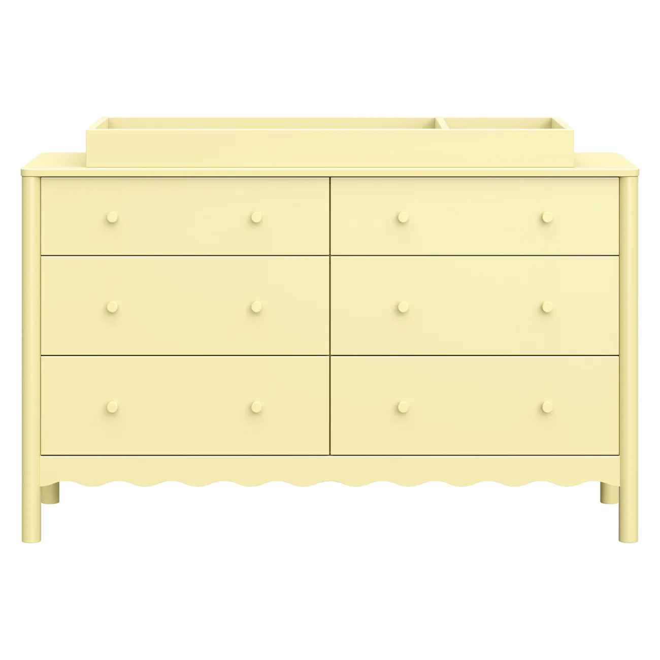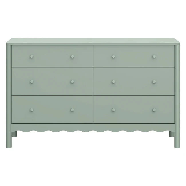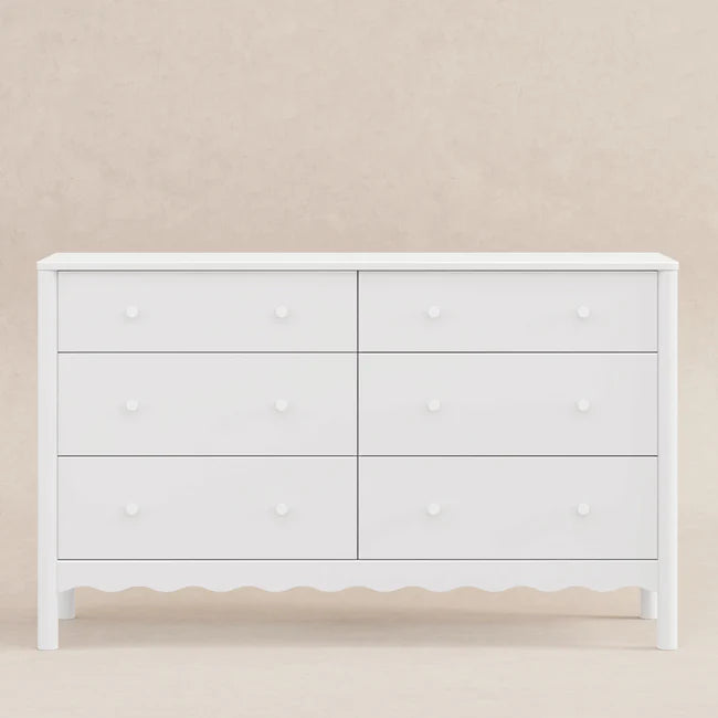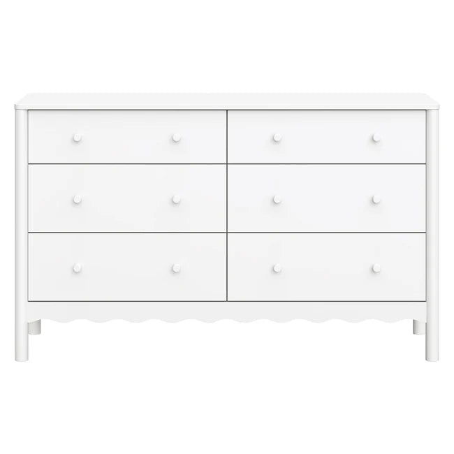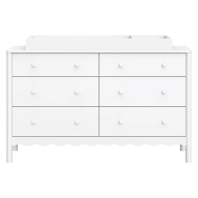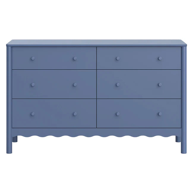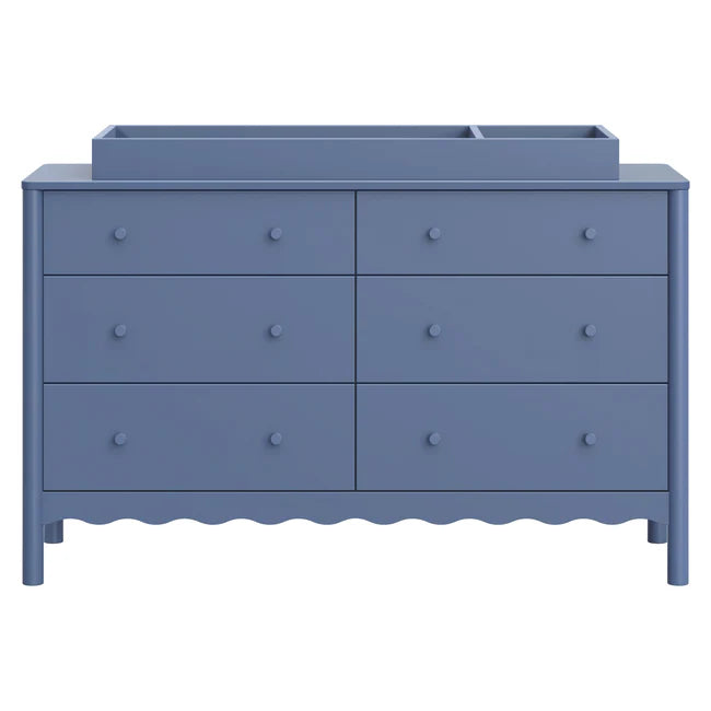 With rounded posts and wave-like edges, the Swell 6-Drawer Assembled Dresser has a modern appeal with an ocean-inspired design that pairs perfectly with the Swell 4-in-1 Convertible Crib. Featuring six spacious and smooth-gliding drawers, this dresser provides ample space for all of your baby's necessities. With additional versatility to add an optional removable changing tray, the Swell Assembled Dresser is perfect storage solution for your newborn and beyond.