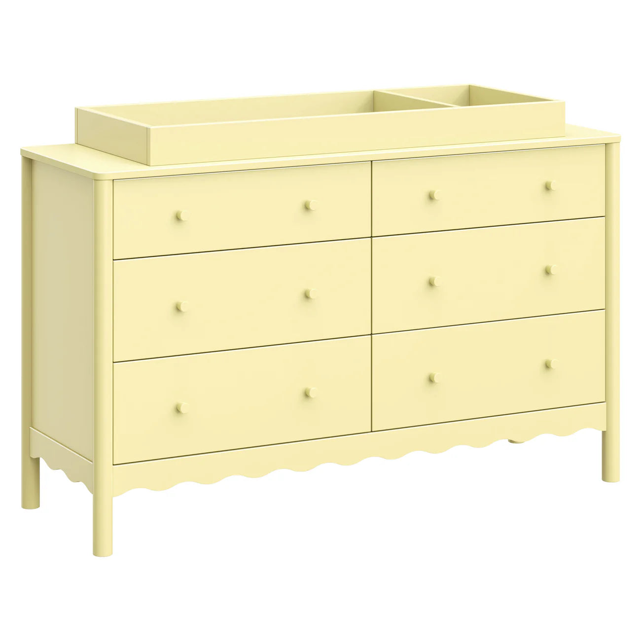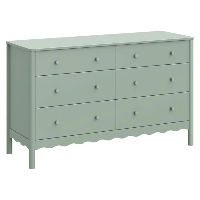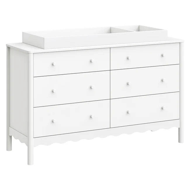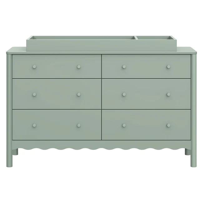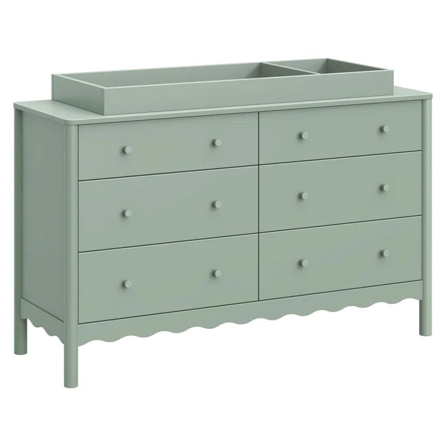 PLAYFUL DETAILS: A perfect balance of modern and playful design, this dresser is crafted with rounded posts and wavy edges, available in playful finishes to coordinate with any modern nursery palette. Option to add a removable changing tray to convert to a changing table for the early years (#M0619 sold separately).