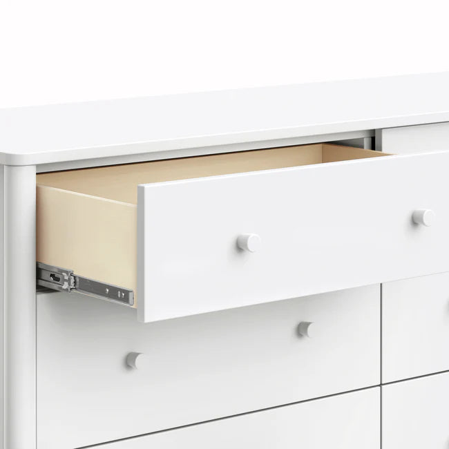 SMOOTH GLIDE DRAWERS: Pre-installed ball-bearing glides, so you can fold away clothes even during nap time. For added safety, stop mechanisms on the drawers prevent them from falling out.