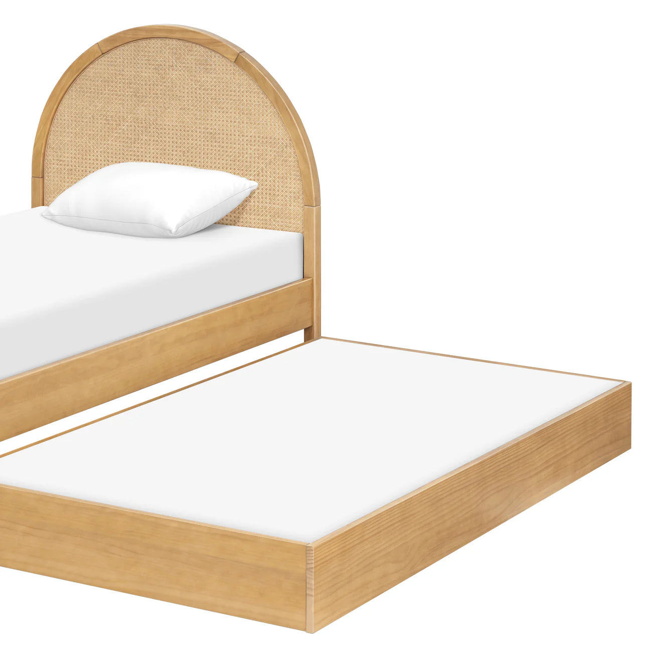 The Bondi Cane Twin Bed by Babyletto features a softly arched headboard with woven cane paneling for a light, airy feel that complements any space, from modern boho to coastal cool. Pair this kids twin bed with Babyletto's matching guardrails for added peace of mind, or add the optional Twin Storage Trundle Bed for sleepovers and secret stashes. The Bondi Cane Twin Bed by Babyletto brings effortless style and thoughtful function to your growing kiddo’s room.
