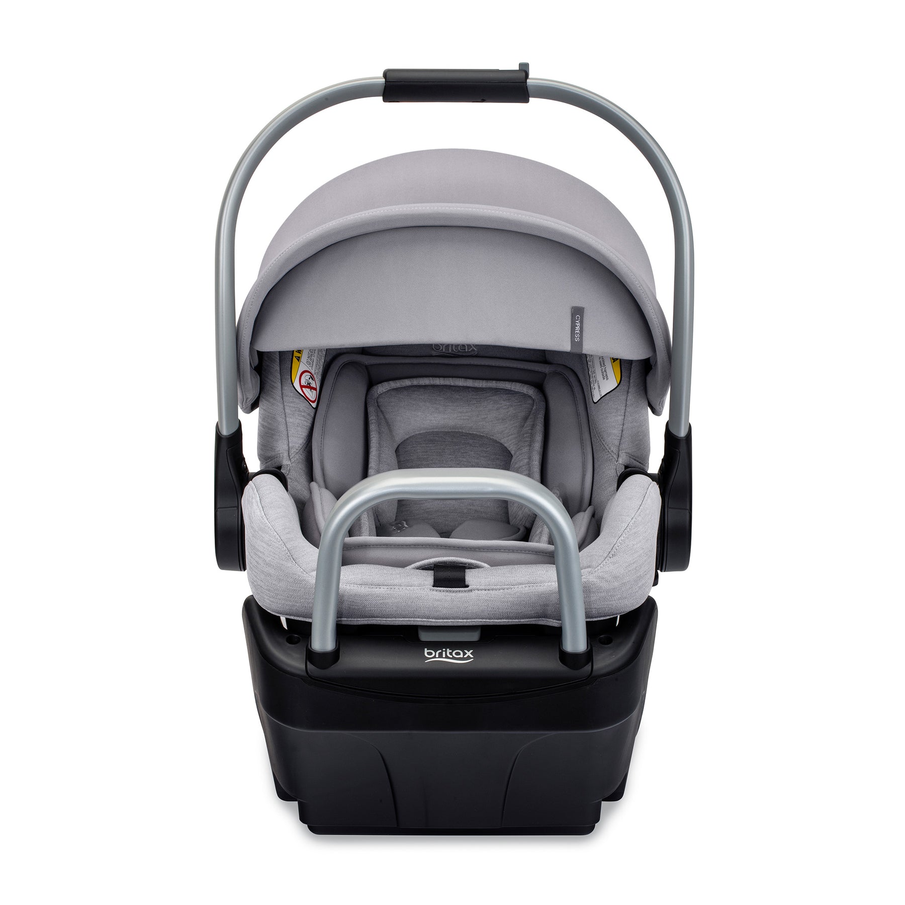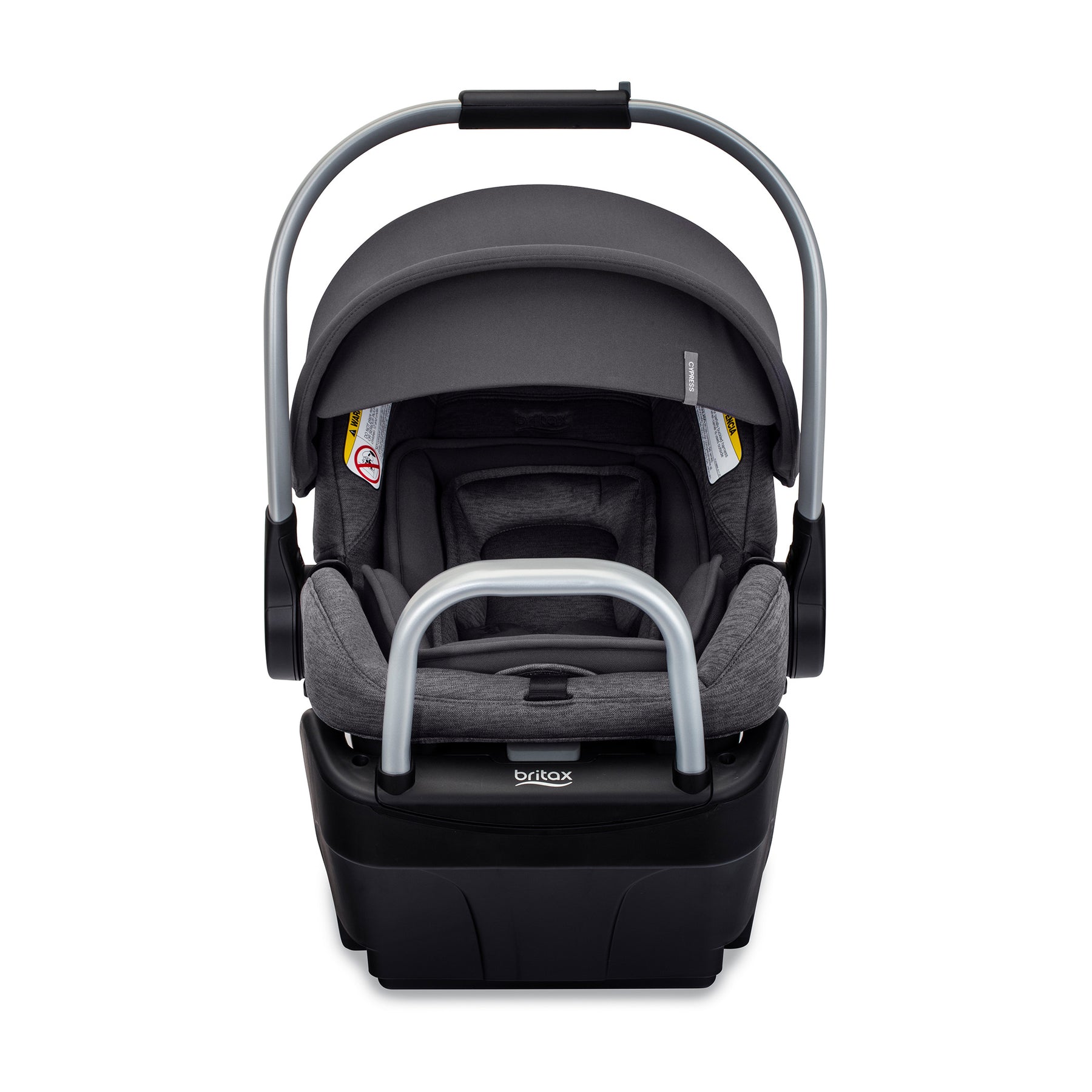 Cherish the journey together with the Cypress™ infant car seat and Alpine™ base. This rear-facing car seat offers convenience, premium style, and trusted Britax safety, giving you the assurance you need on your first ride home and every drive after. Our exclusive ClickTight® technology provides a simple installation in 3 easy steps: open, thread and buckle, click it closed. This newborn car seat offers the perfect combination of style and convenience. The double-knit mélange accents have a soft sheen and a smooth finish for an elegant look and feel. Made with SafeWash® performance fabrics, the cover is washer and dryer-friendly and naturally flame-retardant with no added FR chemicals. Cypress includes three padded inserts to help create a cozier and more customized fit. Two of the inserts layer behind baby’s head and neck for support. This infant car seat also features an aluminum carry handle that easily adjusts with one hand to keep your other hand free. The Alpine base is equipped with a ReboundReduce™ stability bar to help minimize movement so you can travel with confidence.