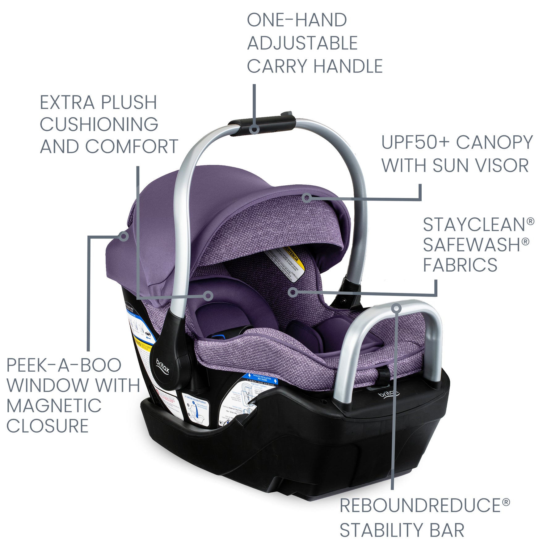 SAFECELL™ TECHNOLOGY: Infant car seat is designed to help manage energy and minimize force transferred to your baby