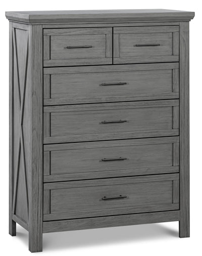The Emory Farmhouse 6-Drawer Chest combines rustic and modern designs to provide a beautiful and functional storage space for your nursery. A perfect addition to the Emory Farmhouse 4-in-1 Convertible Crib & Emory Farmhouse 6-Drawer Dresser, the Emory Farmhouse Chest features 6 deep drawers with self-closing, ball-bearing glides for ease of use.