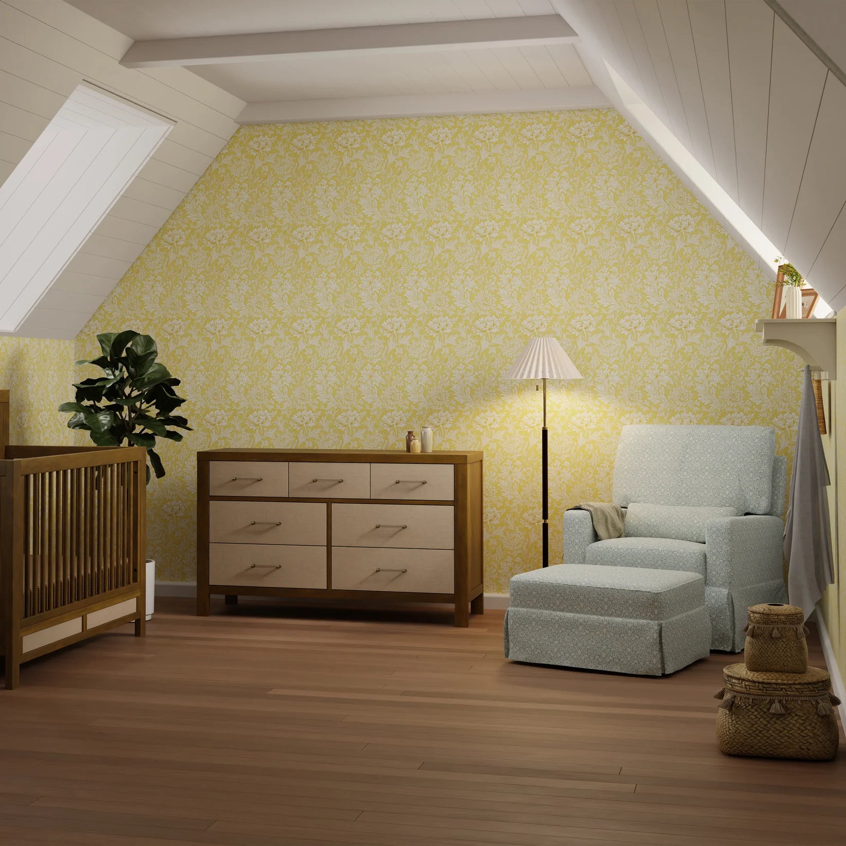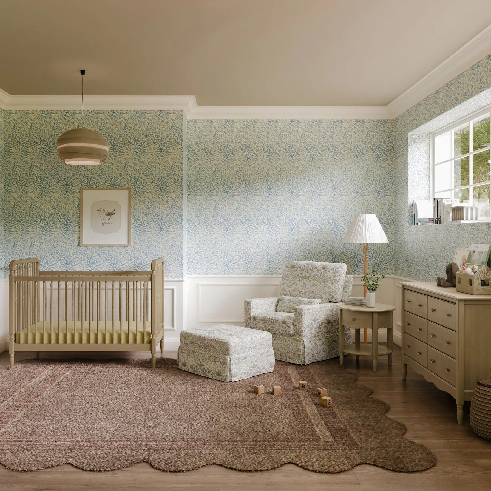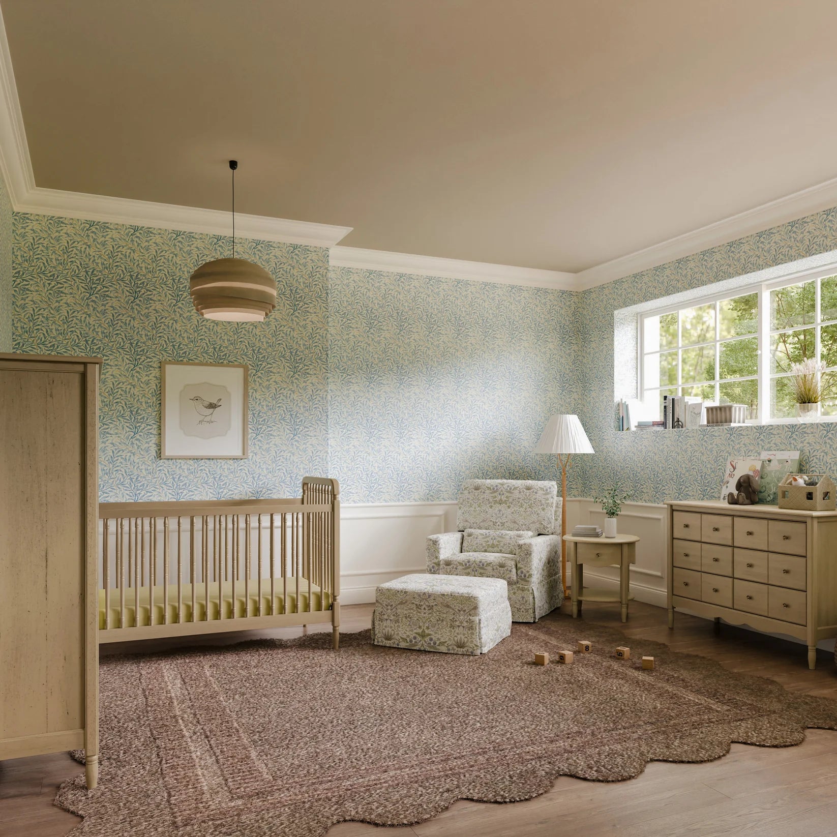 • THOUGHTFUL DETAILS: Our collaboration with Morris & Co. brings their iconic, richly layered prints to life on our timeless nursery furniture.