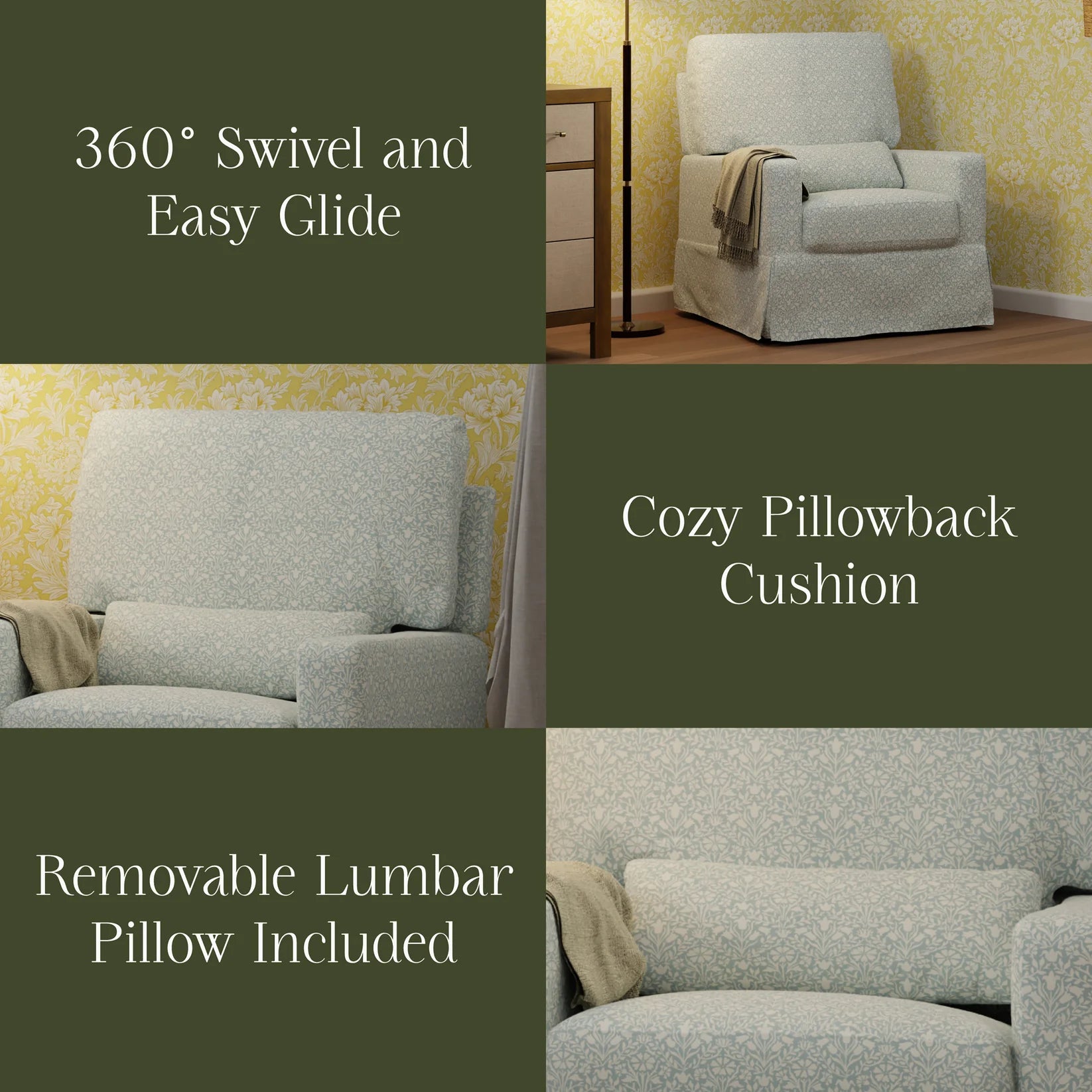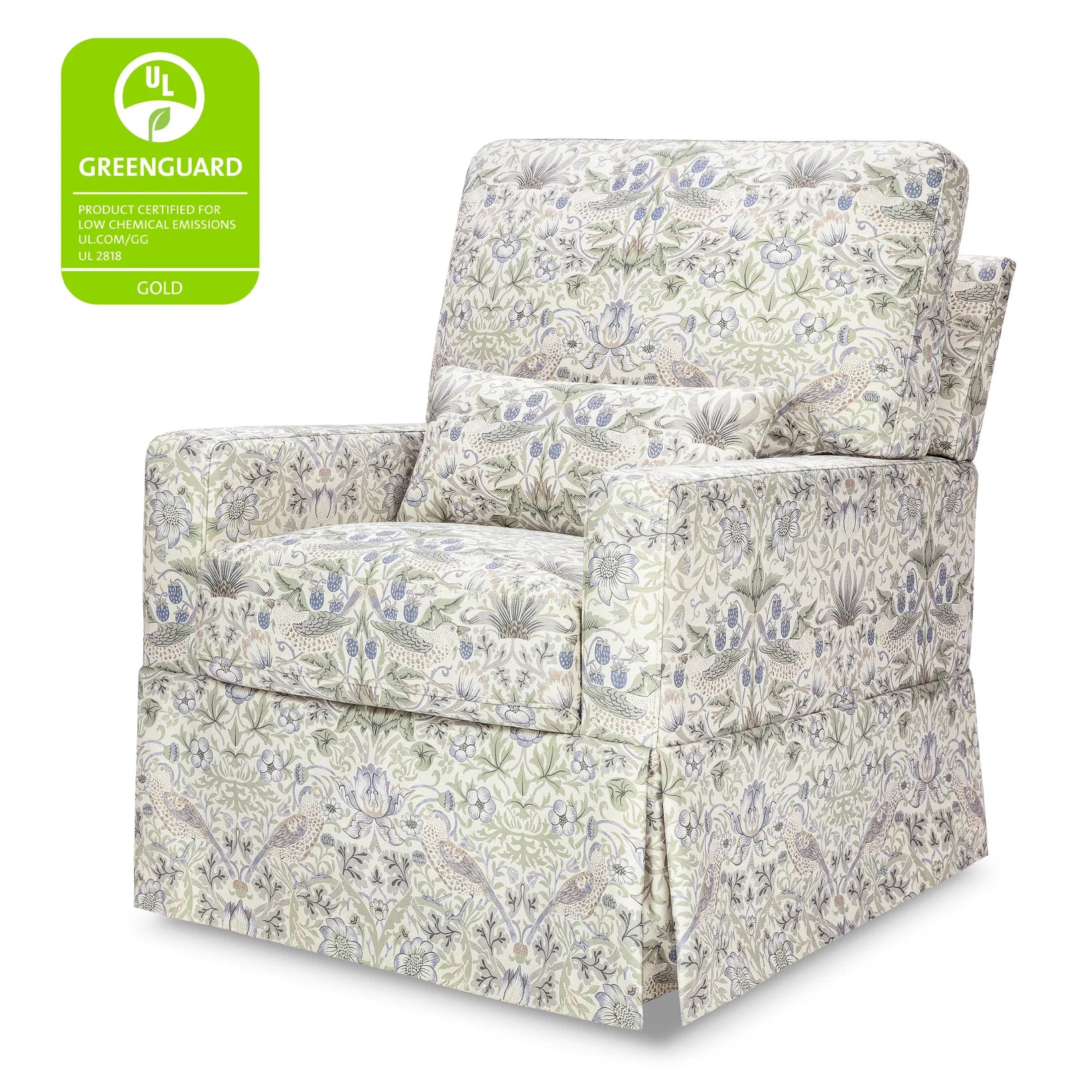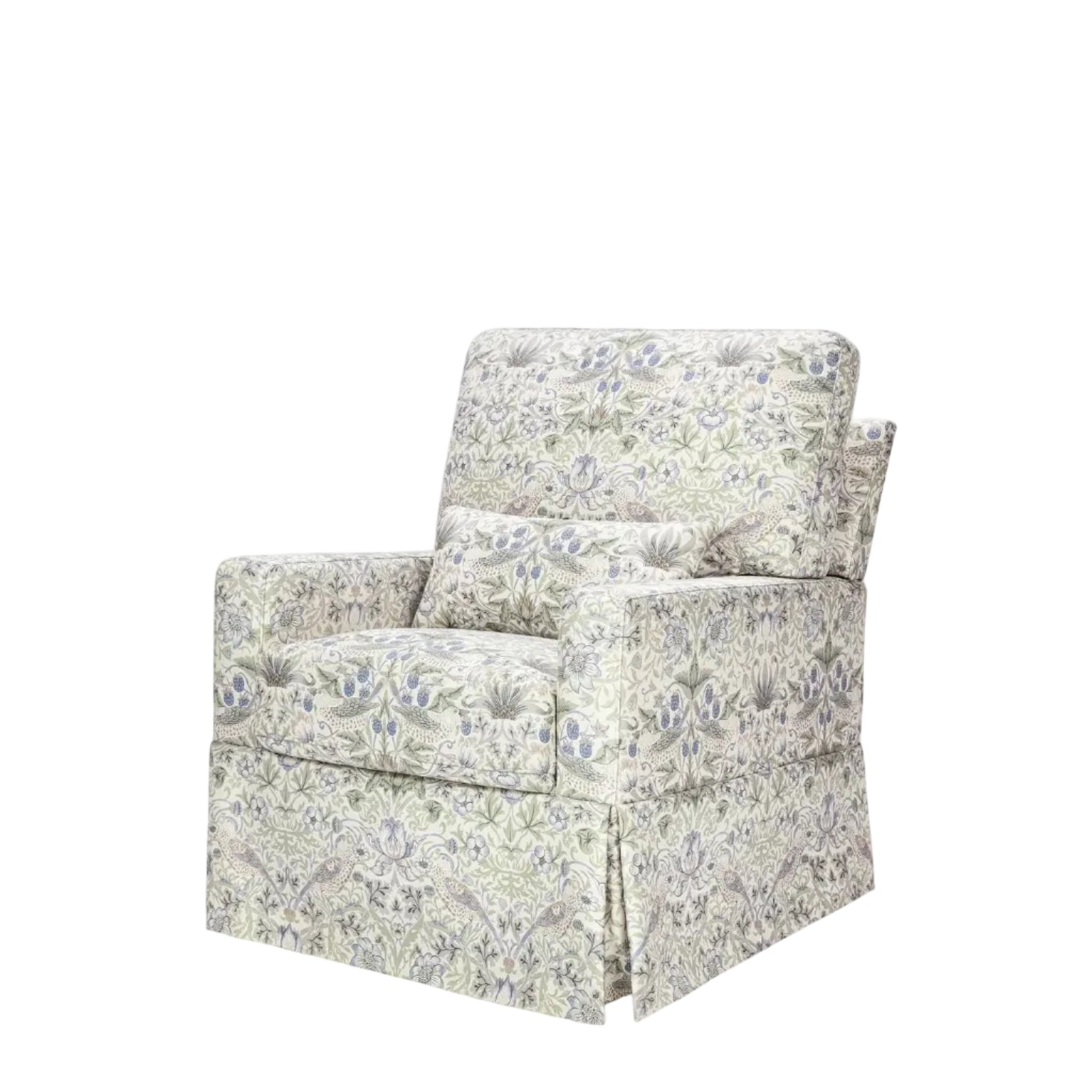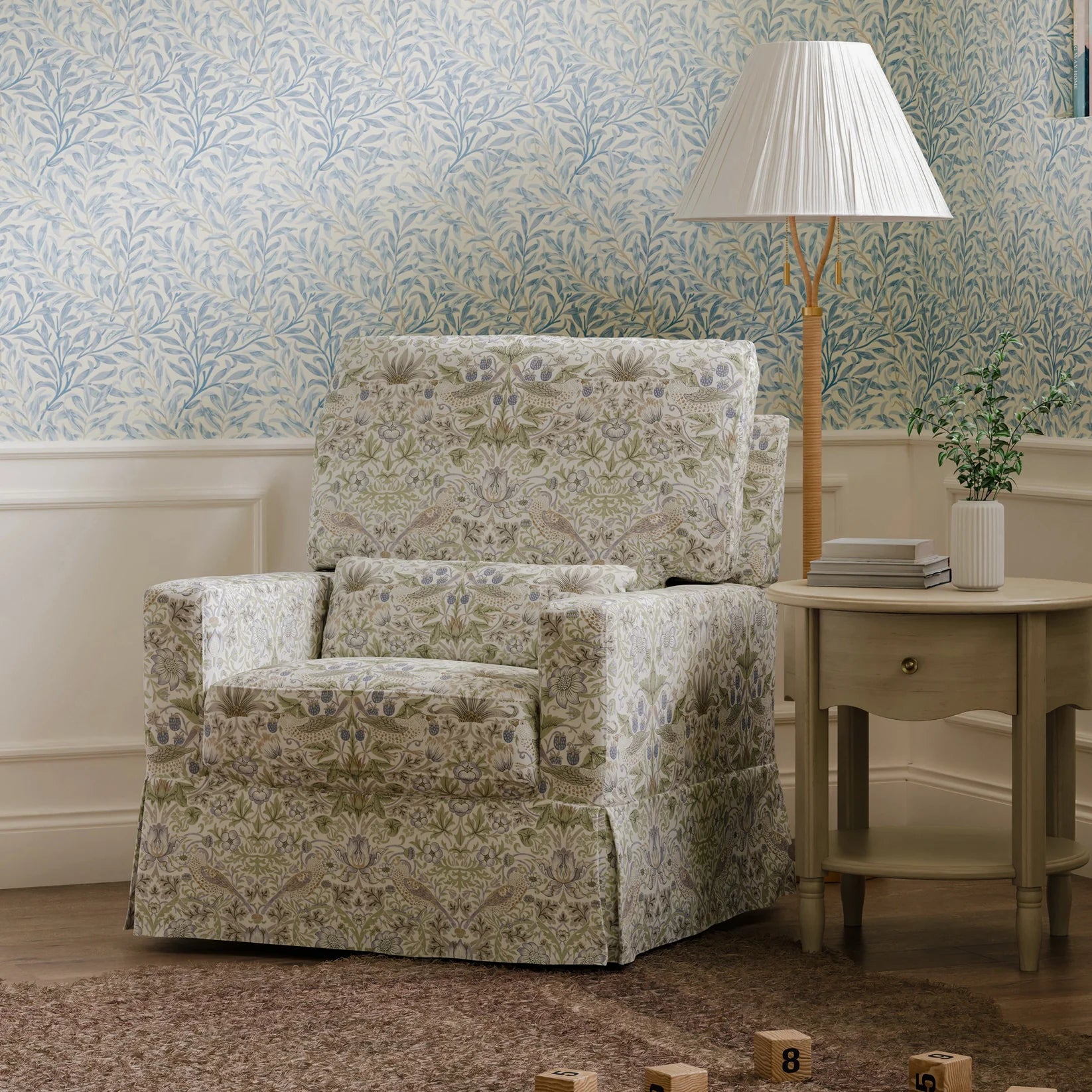 Rooted in the Arts and Crafts movement, Morris & Co. celebrates the beauty of the natural world, traditional craftsmanship, and hand-painted artistry. Our collaboration brings their iconic, richly layered prints to life on our popular Crawford Pillowback Swivel Glider. The Crawford offers a modern take on the traditional slipcover style and brings nursery comfort to a new level with its plush pillow back design, added lumbar pillow, and wide seat.