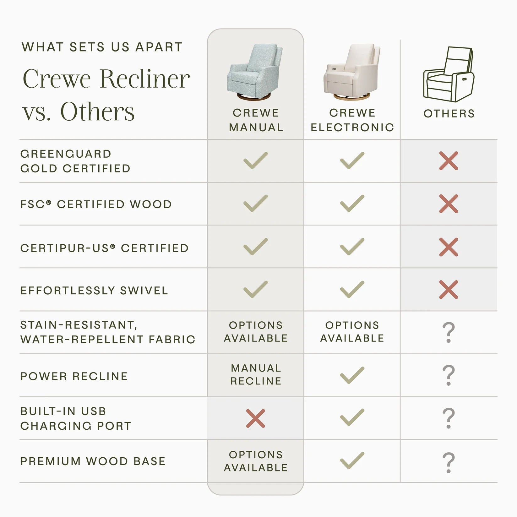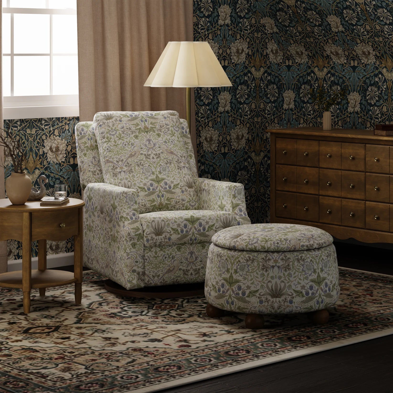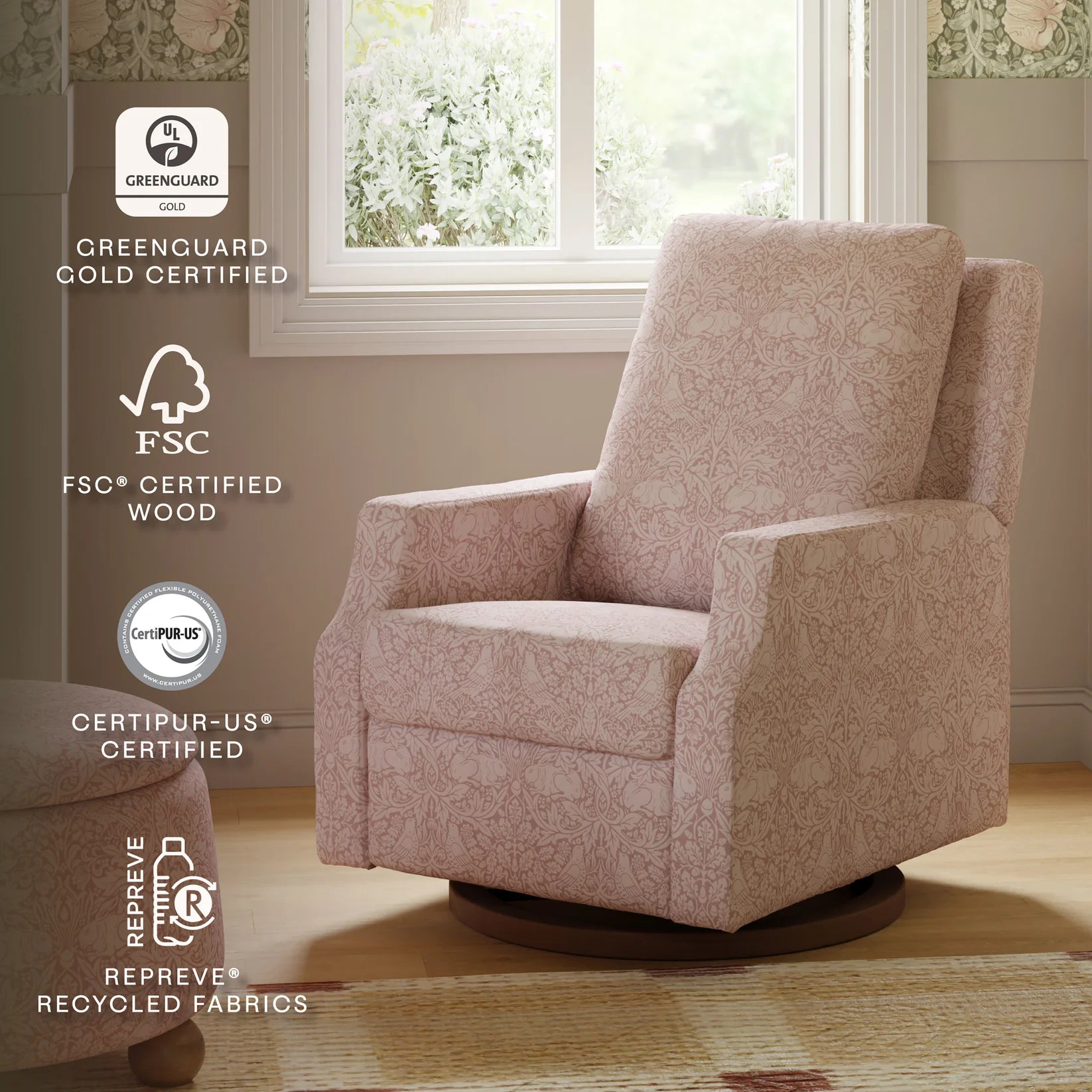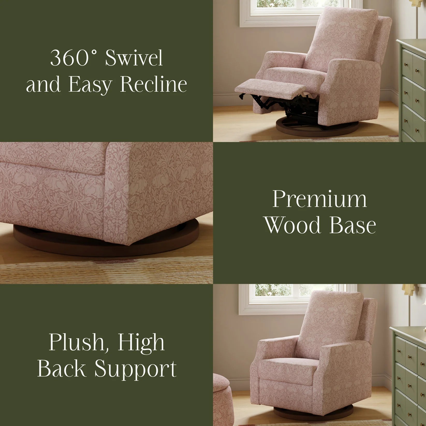 Rooted in the Arts and Crafts movement, Morris & Co. celebrates the beauty of the natural world, traditional craftsmanship, and hand-painted artistry. Our collaboration brings their iconic, richly layered prints to life on our bestselling Crewe Recliner and Swivel Glider. Featuring a crisp, contemporary design and comfortable seat, the Crewe Recliner is the perfect spot to soothe and share with your baby, with its smooth swivel & glide motion and manual recline feature.