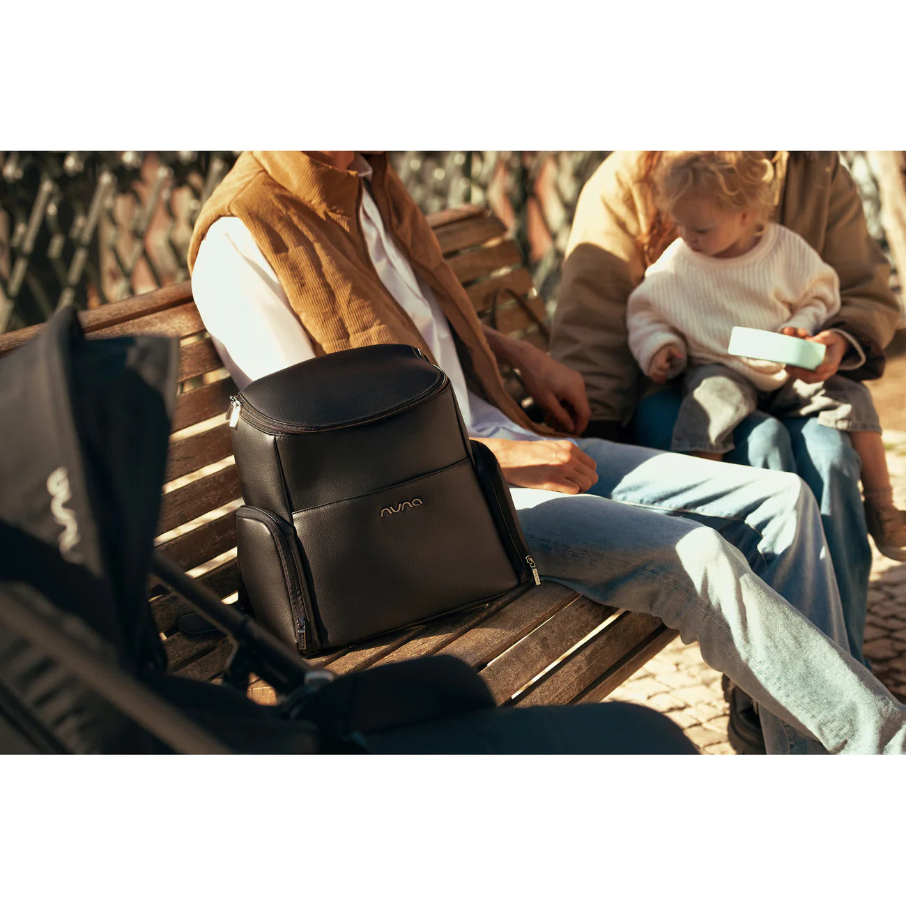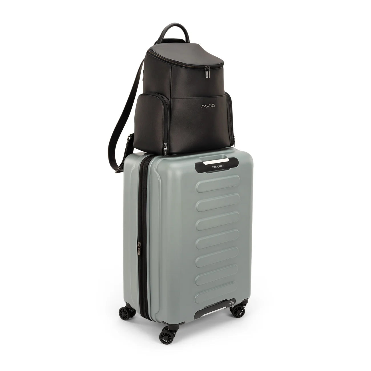 • Embroidered Nuna logo on toiletry pouch and changing pad clutch
