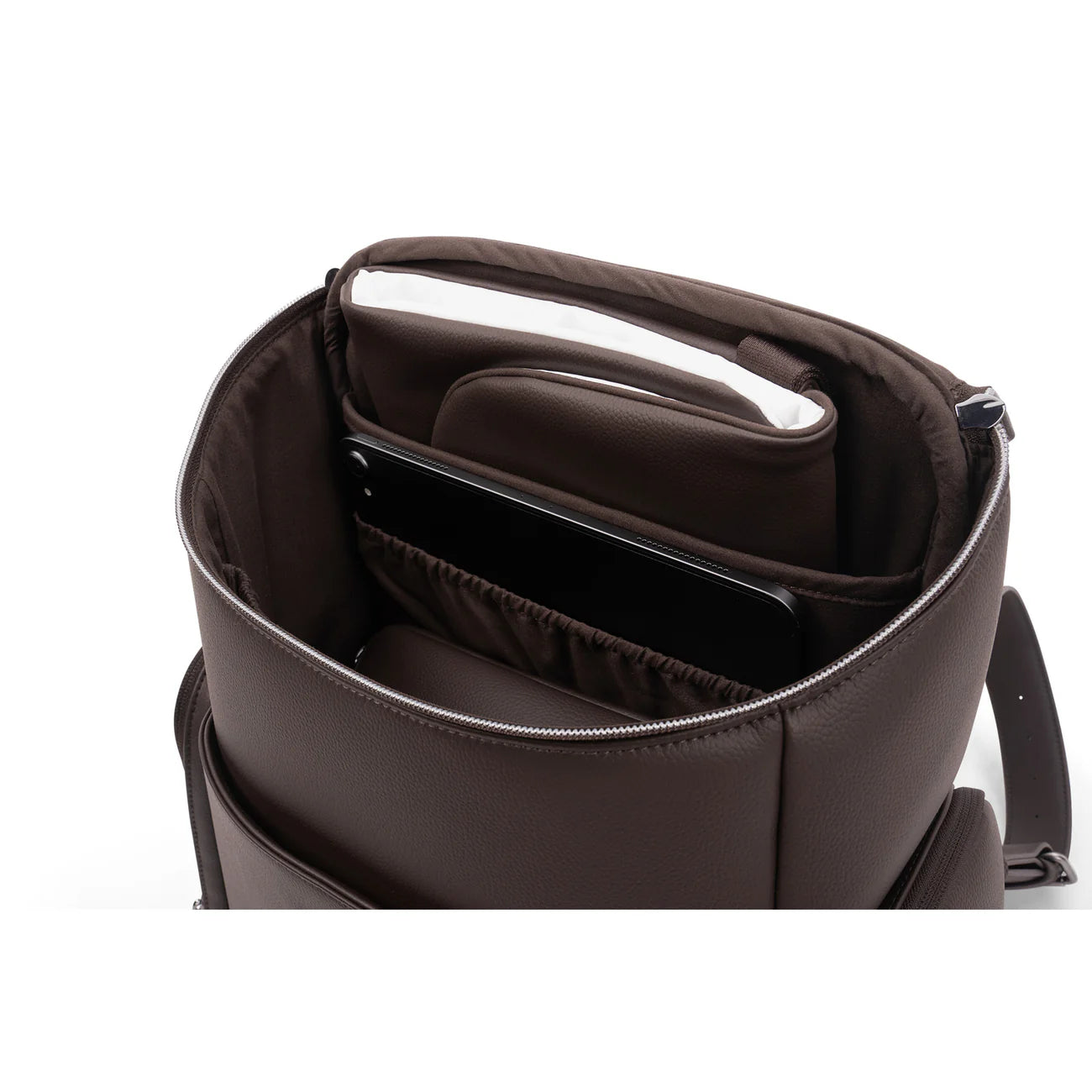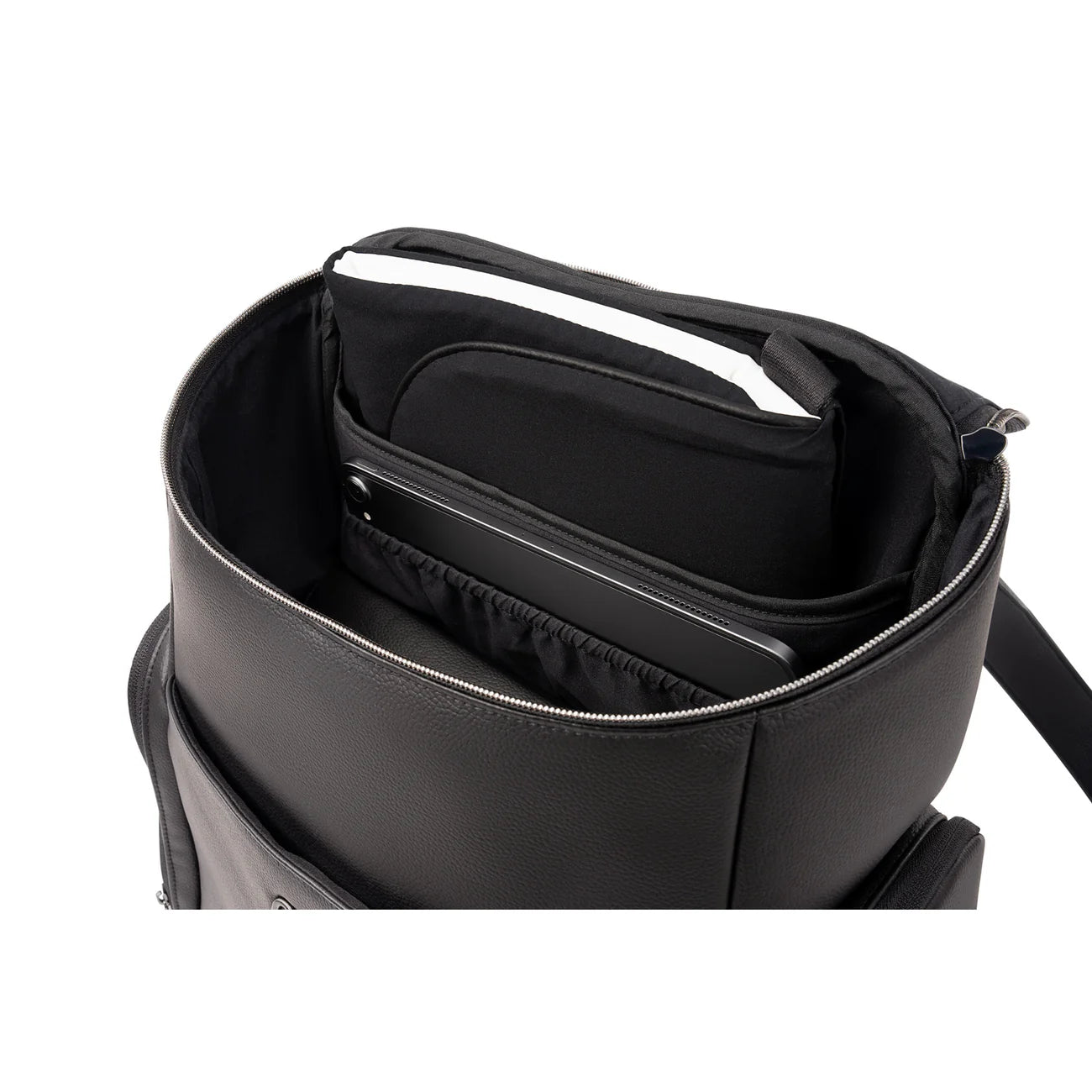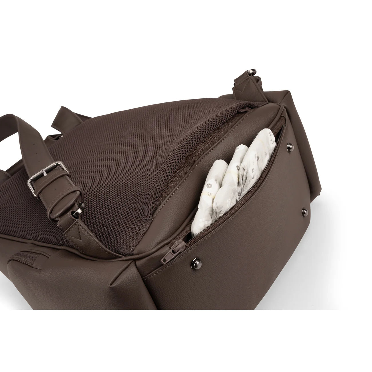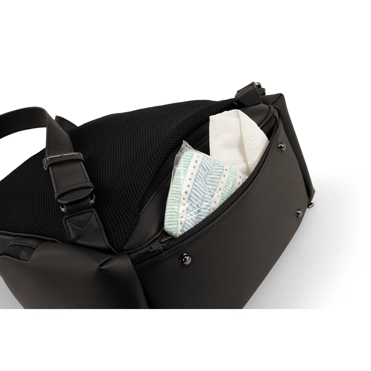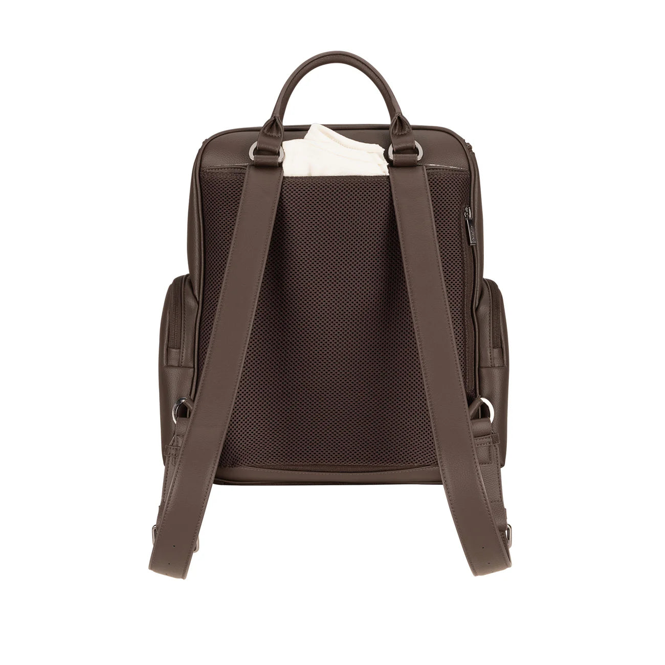 The Essential bag redefines everyday luxury with its chic leatherette styling and versatile parenthood functionality. Crafted as a multi-tasking backpack that also serves as a diaper bag, it features a laptop-friendly design with a thoughtful array of exterior and interior pockets, a handy changing pad clutch, and a luggage trolley sleeve for travel convenience.