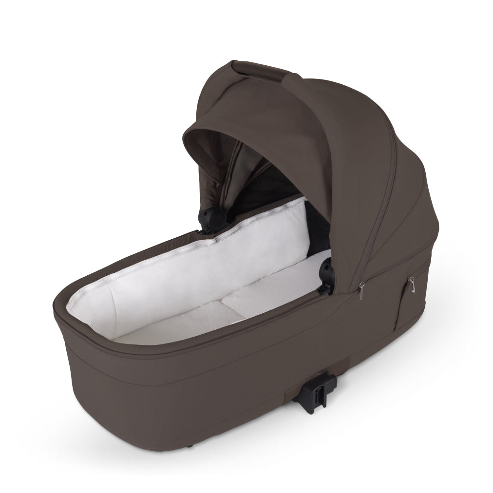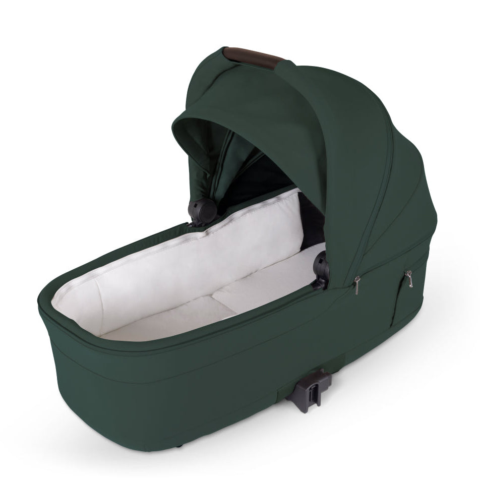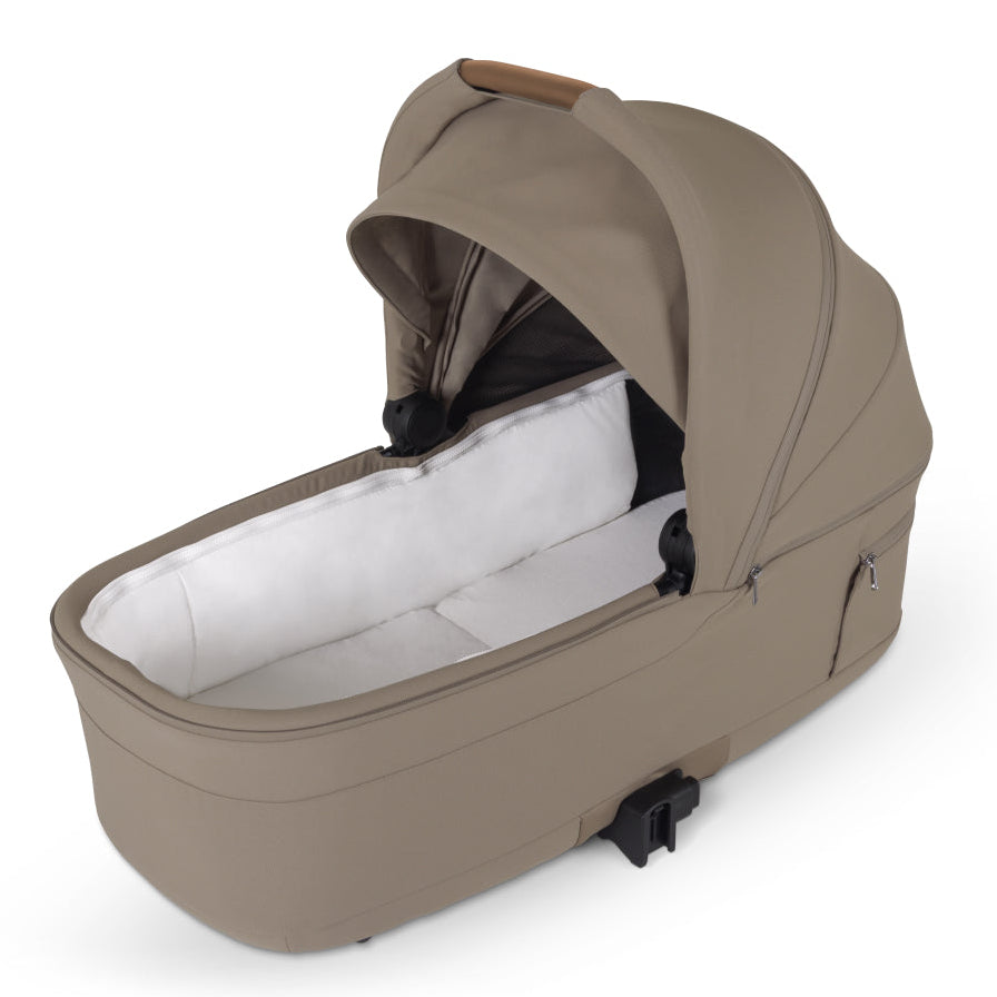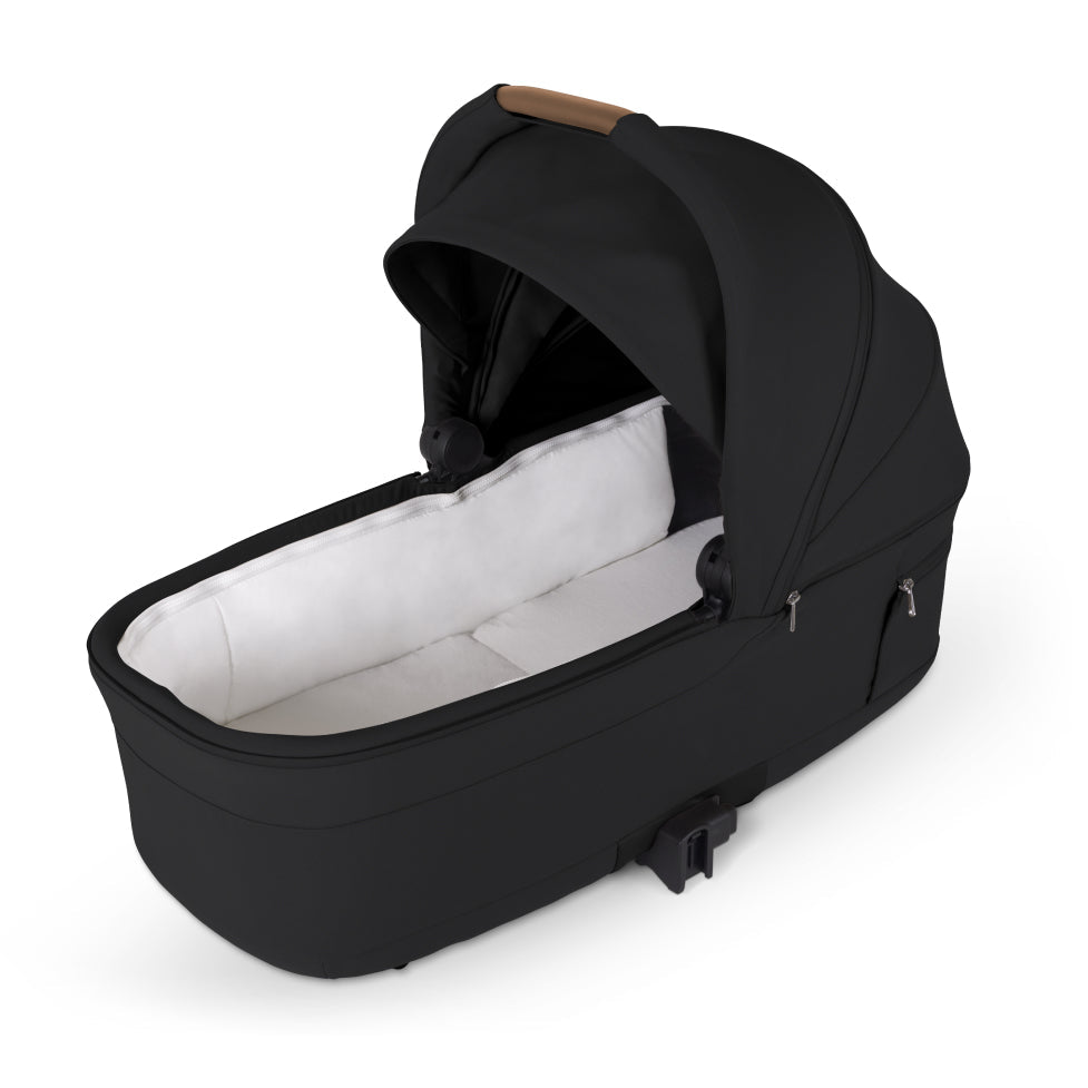 A bassinet unlike any other. Inside, the Nia bassinet has a airy, soft-touch bamboo lined mattress and panoramic airflow ventilation create a cocoon of climate-controlled comfort. Outside, an intuitively smart fold activated without need of removing it from the chassis first.